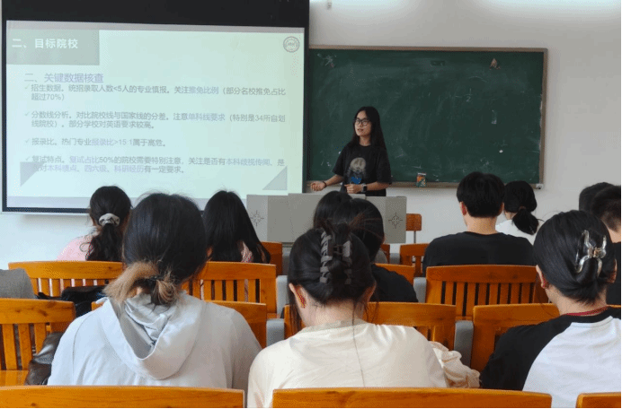 最后,李城鼓励大家要有信心,在定目标院校时要理性客观,不要把目标定得过于高远、不切实际。通过对比往年研究生的录取院校的分布,他提出大家填报志愿时要多参考华农和本校的录取情况去选择。