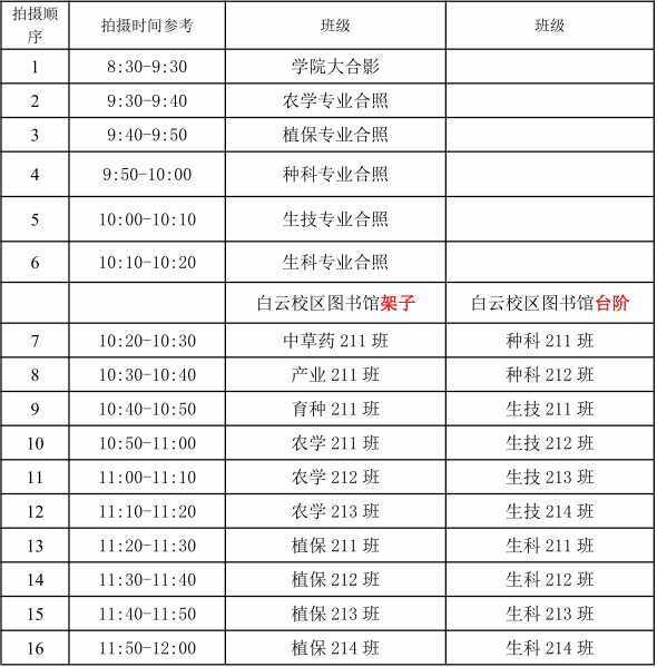 7.拍摄完学院合照及班级照的同学可以先行离开,未拍完的班级请不要随意走动。拍摄第一个班级的时候要保证等候区有两个班级集队等候。