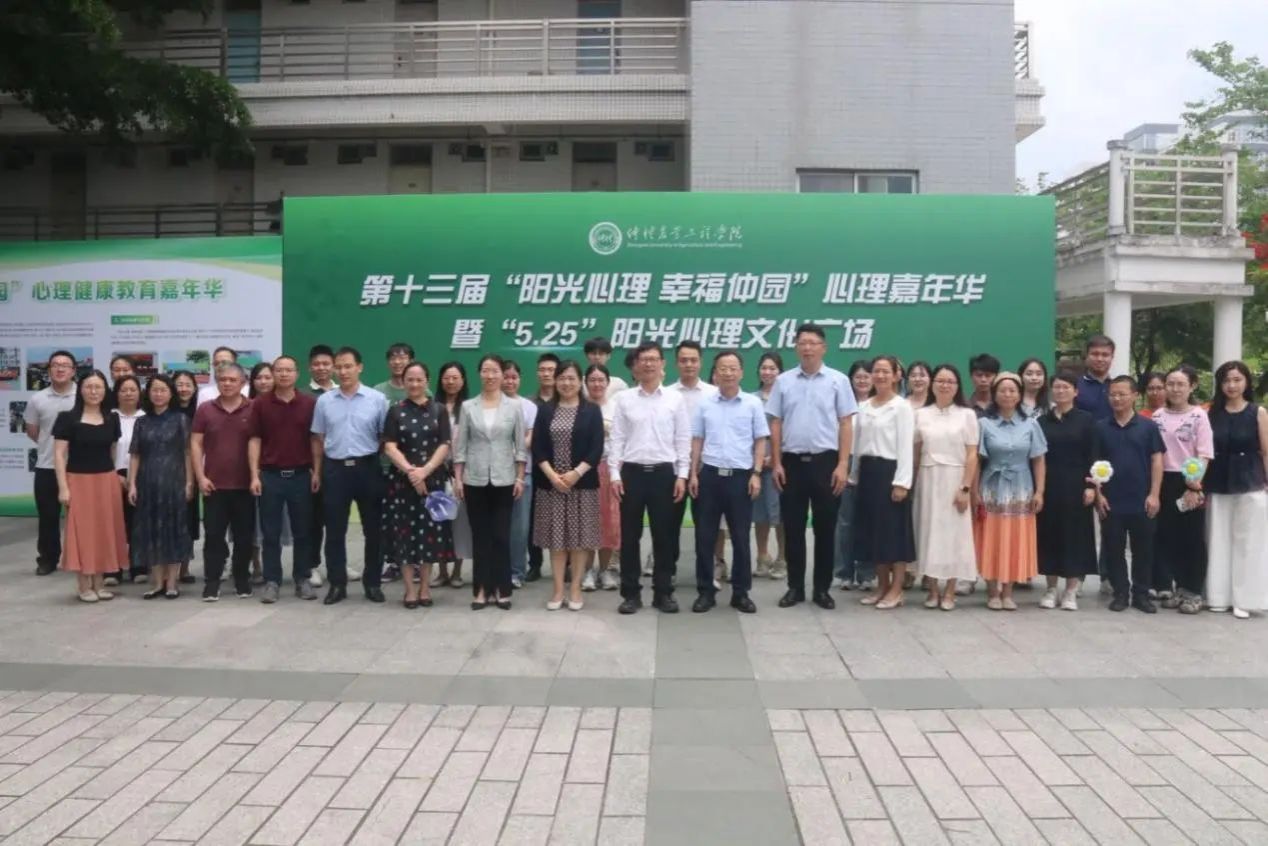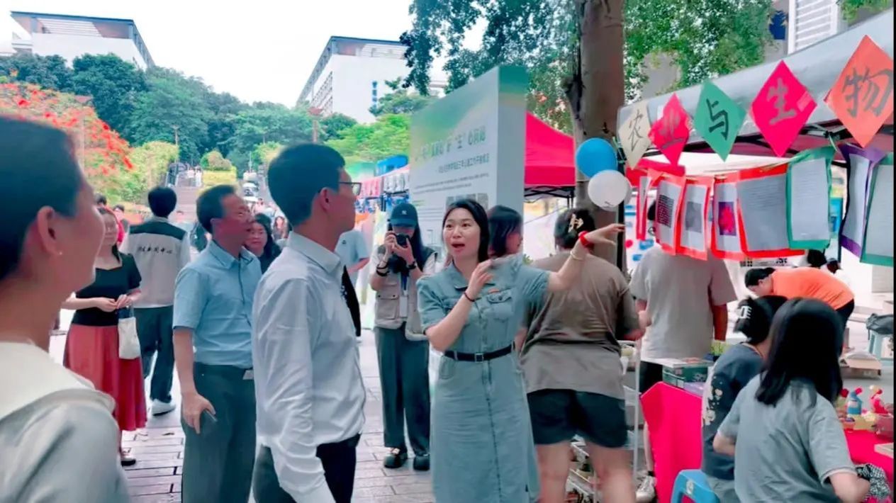 当天,阳光明媚的空地上,彩色气球与心理主题标语交织出温馨氛围,吸引师生们纷纷驻足。活动期间,学校党委副书记朱立学莅临现场指导,学院心理指导老师邝健睿向校领导一行热情介绍了摊位的设计理念与互动逻辑,获得现场肯定。