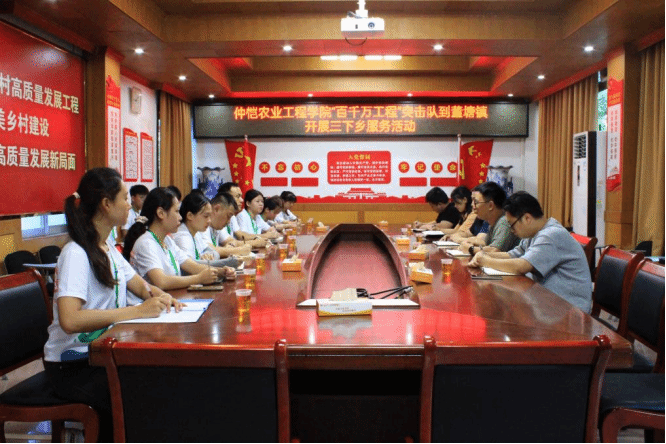 为深入贯彻落实习近平总书记关于青年工作的重要讲话精神,扎实推进广东省“百千万工程”工作部署,坚持“地市所需,仲恺所能”,助力董塘镇经济高质量发展,6月27日,“仲情丹霞·青春农行”百千万工程青年突击队在董塘镇政府开展项目对接活动。m88 app科技特派员崔华威博士、辅导员李城老师与董塘镇党委委员、常务副镇长张祖强,党委委员、团委书记邓炜斌,党委委员张静怡,百千万工程指挥部办公室副主任黄守民,团委副书记吴文凯,围绕“百千万工程”主题展开深入座谈。