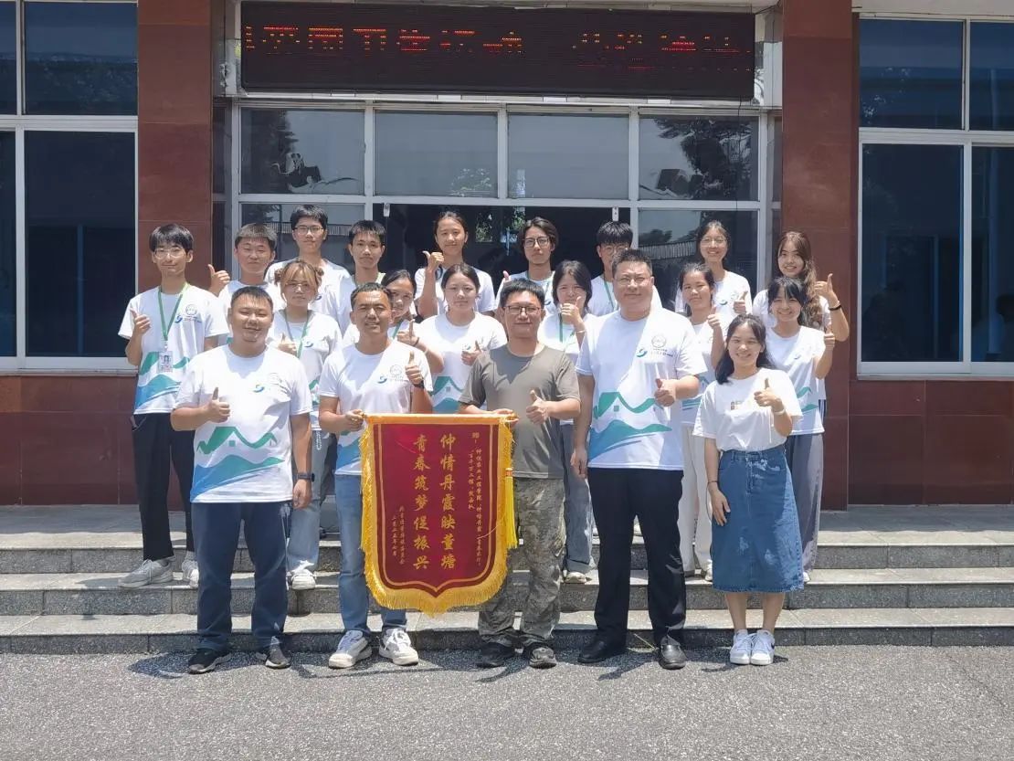 最后,邓炜斌代表镇团委向m88 app赠送了锦旗,以表达对m88 app百千万工程突击队在董塘镇所开展的一系列乡村振兴工作的感激之情。这面锦旗不仅是对同学们辛勤付出的肯定与鼓励,更是校地合作成果的生动体现。同时,也标志着“仲情丹霞·青春农行”百千万工程突击队暑期“三下乡”实践活动的圆满结束。