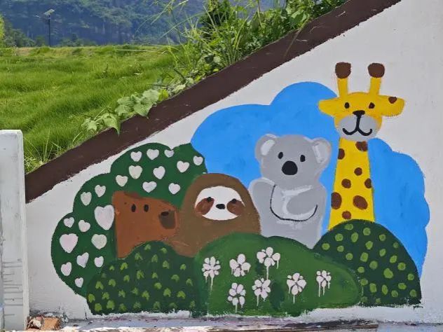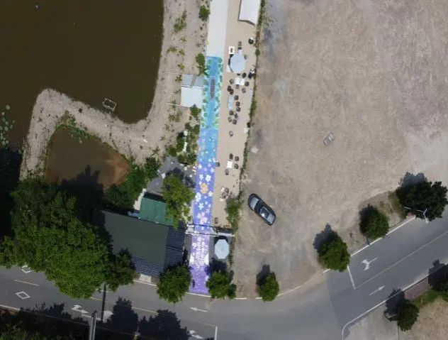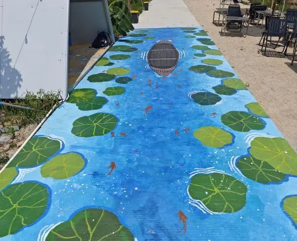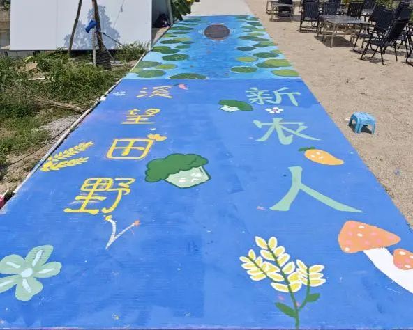 在全体队员的齐心协力、不懈努力下,下午两点钟,绘画工作完美收官。此次共完成7幅地绘、墙绘作品,总面积超过200平方米。原本单调乏味的农场道路和建筑,在队员们的妙笔生花之下,焕然一新,摇身一变成为了一条充满艺术气息的“文化长廊”。这些精美的画作宛如一颗颗明珠,镶嵌在乡村的土地上,不仅极大地提升了农场的文化氛围与视觉美感,更为当地打造了一张独具特色的乡村文旅新名片。