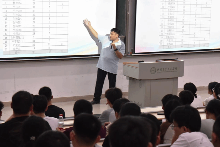 会议伊始,李城首先向同学们介绍了自身工作职责,明确表示将主要负责大家的日常思想政治教育、学业指导与生活关怀,同时主动告知,若同学们在学习、生活或心理层面遇到任何问题,都可随时与他沟通交流。随后,他围绕中学与大学的差异展开分享,重点指出大学在多方面呈现出新特点:学习方式上更强调自主性,老师会引导大家主动探索,同学们需转变角色、成为学习的主角;管理模式则从中学阶段的“被动管理”转向大学的“自我管理”,因此,自律在大学学习生活中变得尤为关键。