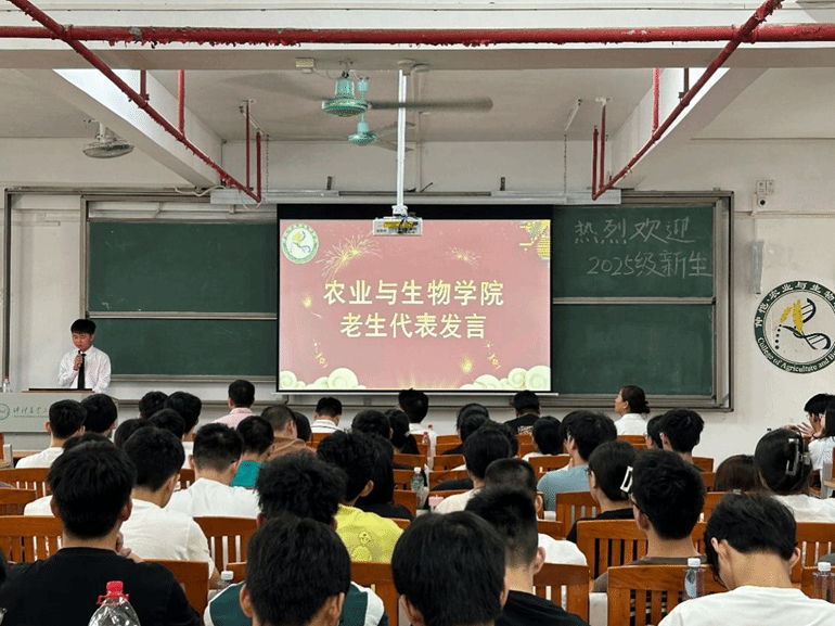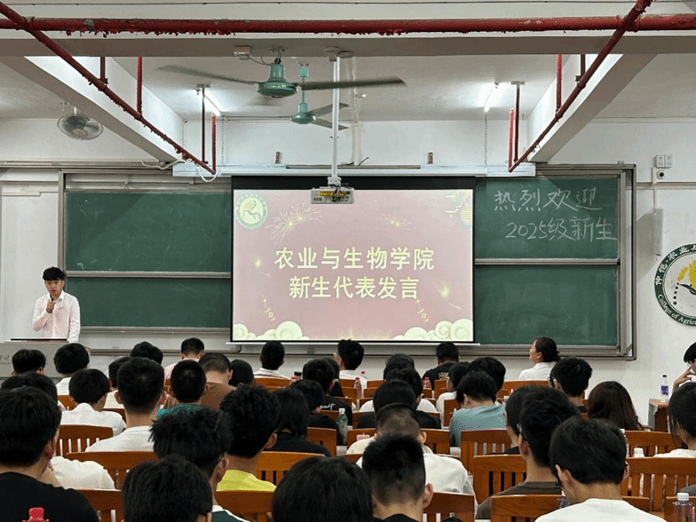 新生代表农学252班石一谦同学用诗意的语言,表达了作为来自增城这个荔枝之乡的学子对农业事业的赤子之心,并立下了"将论文写在大地上"的青春誓言。老生代表种科231班黄柏希同学则分享了自己的成长经验,从"适应新节奏、敢于试错、珍惜同窗情"三个方面为学弟学妹提供了实用建议。