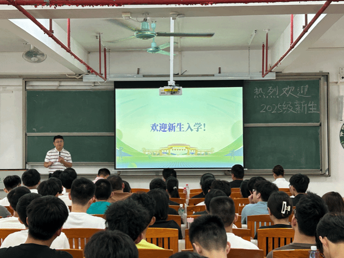 会议在热烈的氛围中拉开帷幕。院长喻国辉首先代表学院致欢迎辞,并以"长子学院"的深厚历史为切入点,系统介绍了学院的发展历程、学科特色与师资力量。通过展示海珠校区历史建筑、廖仲恺先生纪念碑等珍贵影像,喻院长生动讲述了包括陈耀邦部长等杰出校友的故事,凸显了学院"农行天下,生生不息"的育人传统。在介绍植物保护、作物学等优势学科时,喻院长重点展示了各科研团队的研究成果,用"秀肌肉"的方式展现了学院的雄厚实力,让新生对所学专业充满信心。
