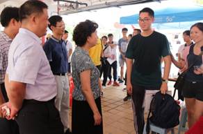 上午,校党委书记宋垚臻、校长程萍莅临m88 app迎新现场,在陈丹雄书记的陪同下,视察指导m88 app迎新工作。宋书记与程校长向工作人员和到校新生、家长表达了诚挚的问候。同时,他们听取了m88 app领导对新生报到工作开展情况的汇报,对m88 app迎新工作表示肯定。