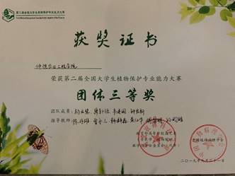 经过一天激烈的角逐,第二届全国大学生植物保护专业能力大赛落下帷幕,m88 app参赛队伍荣获团体三等奖以及植保专业技能比赛三等奖。