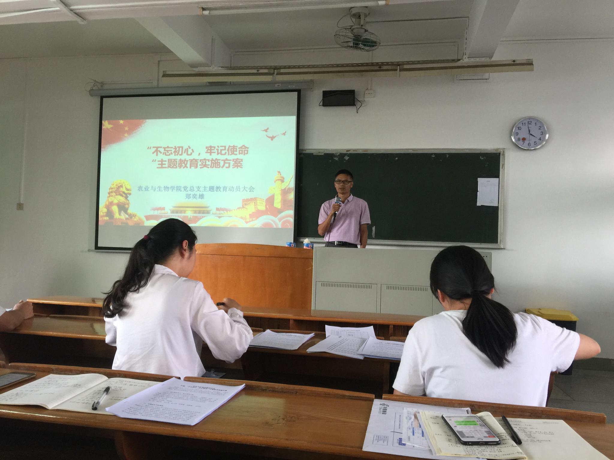 在深入学习贯彻落实习近平总书记“不忘初心、牢记使命”主题教育工作会议上的重要讲话精神,全国第二批主题教育扎实开展的背景下,农生院教工第二党支部按照学校党委印发《中共m88 app委员会关于开展“不忘初心、牢记使命”主题教育实施方案》的要求,结合学院党总支的主题教育活动系统部署,近日在海珠校区教学楼808室召开了“不忘初心、牢记使命”主题教育党支部大会。党支部全体党员,支部委员,党小组长参加会议,