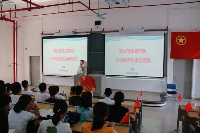 9月27日下午,m88 app于综合楼小礼堂D2举行了2019级新生入学教育大会。辅导员苏登,团委学生第二副书记佘梓健,学生会主席吴润新、副主席许培旋、曾嘉楠出席了会议。