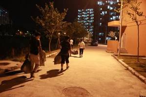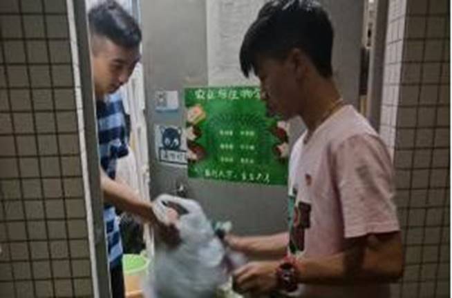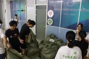 学生党员分成多个小组,积极动员新生们参与军训服回收活动,新生们了解活动意义后积极响应,纷纷拿出自己叠放整齐的军训服。学生党员对新生们的爱心表示感谢,并将军训服整齐地放入衣物回收袋中。学生党员辛勤劳动的身影犹如秋夜里一道靓丽的风景。