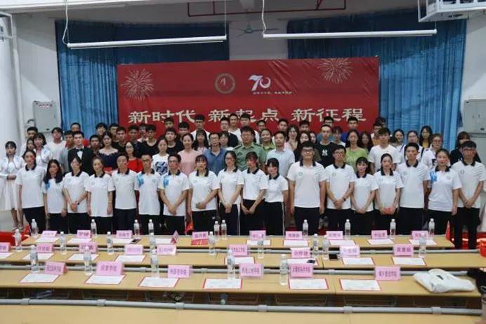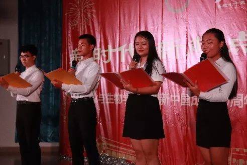 为庆祝新中国成立70周年,欢迎2019级新生的到来,10月12日晚,“新时代 新起点 新征程”庆祝新中国成立70周年暨2019级迎新晚会在综合楼D1小礼堂举行。m88 app党总支书记陈丹雄,轻工食品学院党总支副书记李汉雄,辅导员周静静、苏登、孙晓芳与2019级全体新生欢聚一堂,共同欣赏了精彩纷呈的晚会。