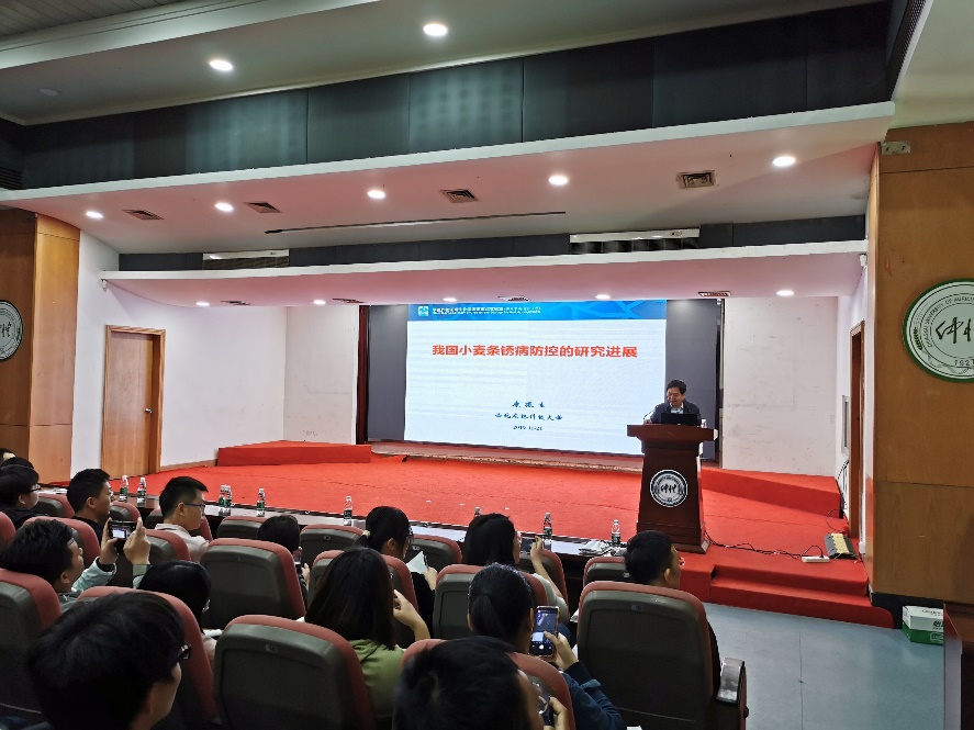 随后,康振生院士以《我国小麦条锈病防控的研究进展》为题,从新时期植物保护面临的挑战、中国小麦条锈病综合防控现状、条锈菌有性生殖与病害持续控制和条锈菌致病机理与品种抗病性改良等方面介绍了自己团队的研究成果。
