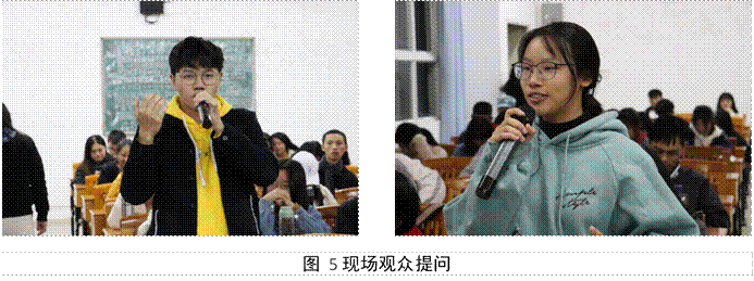 在评委进行赛后讨论和分析期间,现场观众大胆向正反方的辩手们提出质疑,辩手们坚定观点立场,旁征博引,有理有据地回答了观众提出的质疑。
