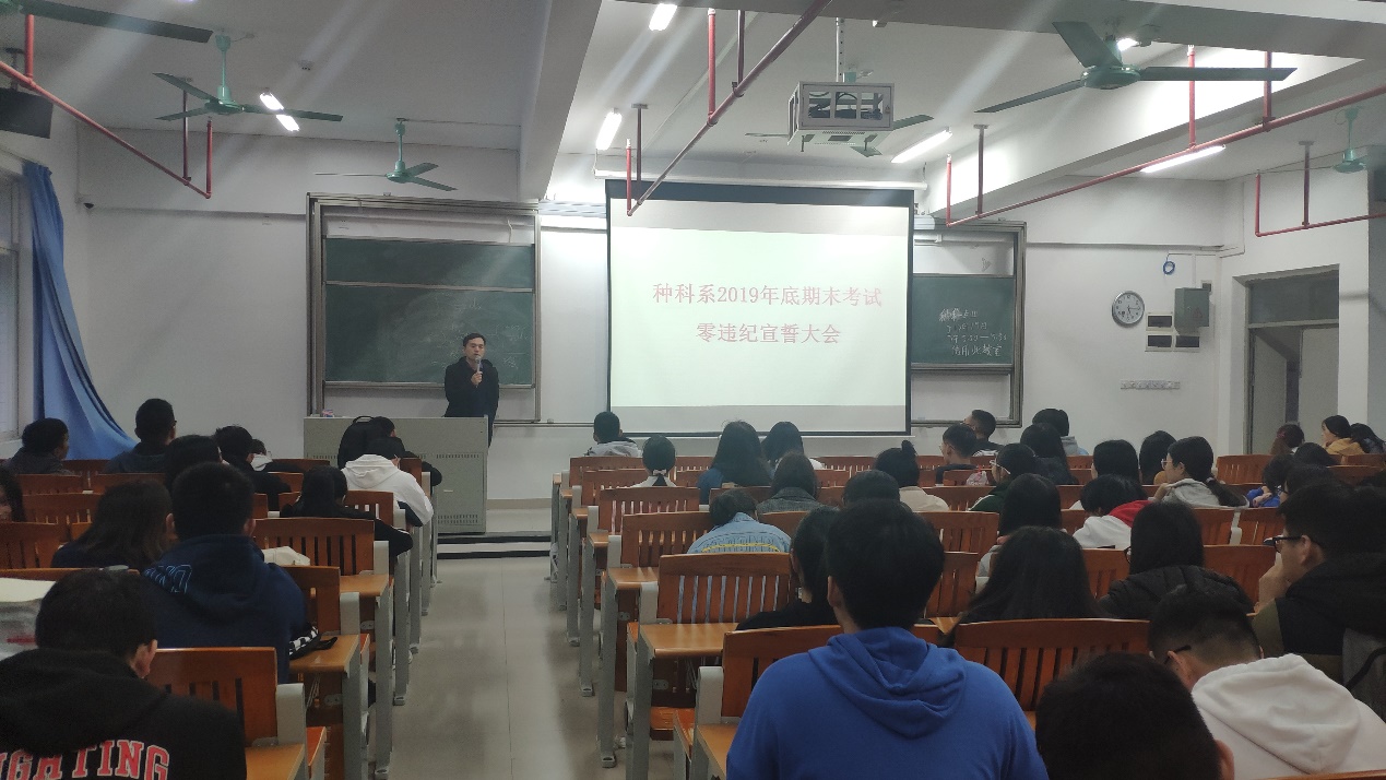提高学生诚信意识,营造优良学风、考风,12月19日下午,种科系于白云校区综合楼511室召开期末考试零违纪动员大会,会议由系主任崔华威主持,种科系2017、2018、2019级全体学生参会。