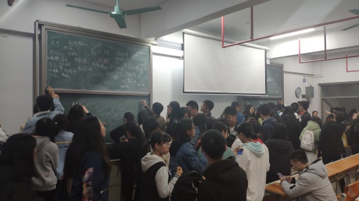 最后,所有参会学生在黑板上签名,承诺在年底考试中杜绝作弊现象,实现全系考试“零违纪”的目标。