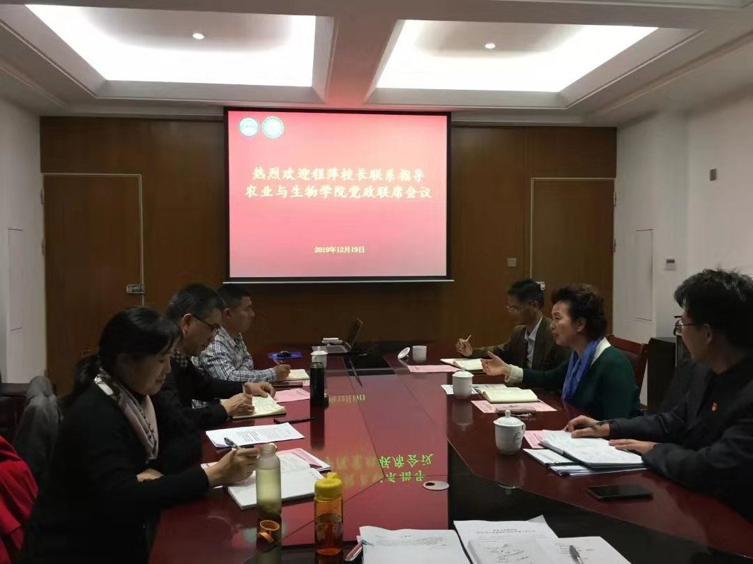 程萍校长表示非常高兴参加m88 app党政联席会议,全面了解农生院2019年各项工作的开展情况。程萍校长对农生院领导班子的工作给予充分肯定,认为农生院党政领导班子团结一心,共同谋划,分工明确,各位副职认真履职,工作特色、有成效。最后,程萍校长作提出5点期望:第一,未来学院要加强领导班子建设,强化顶层设计,理清工作思路。在新时代乡村振兴背景下,立足广东产业,系统思考找准学院发展定位,发挥自身专业特色、学科优势,找到与其他高水平农业大学的错位发展优势。第二,2020要突出工作重点,打造学院亮点。以仲华基因科技产业学院为重要抓手打造“金专、金课、金师”,以植物健康创新研究院为重要依托擦亮金字招牌,加快现代种业创新研究院公共平台的建设。第三,重点瞄准领军人才的引进,集聚力量重点培养优势学科,强化教师队伍建设。第四,加强学生思想政治教育,尤其加强农学类专业学生的理想信念教育和专业思想教育。希望大家更多地深入学生课堂宿舍,深入学生实际,深入了解学生需求,并高度关注学生心理健康。第五,坚持创新。不管是教学、科研或对外合作,都要创新工作方式方法,完善工作机制及学院各项制度,提高学院治理体系和治理能力。