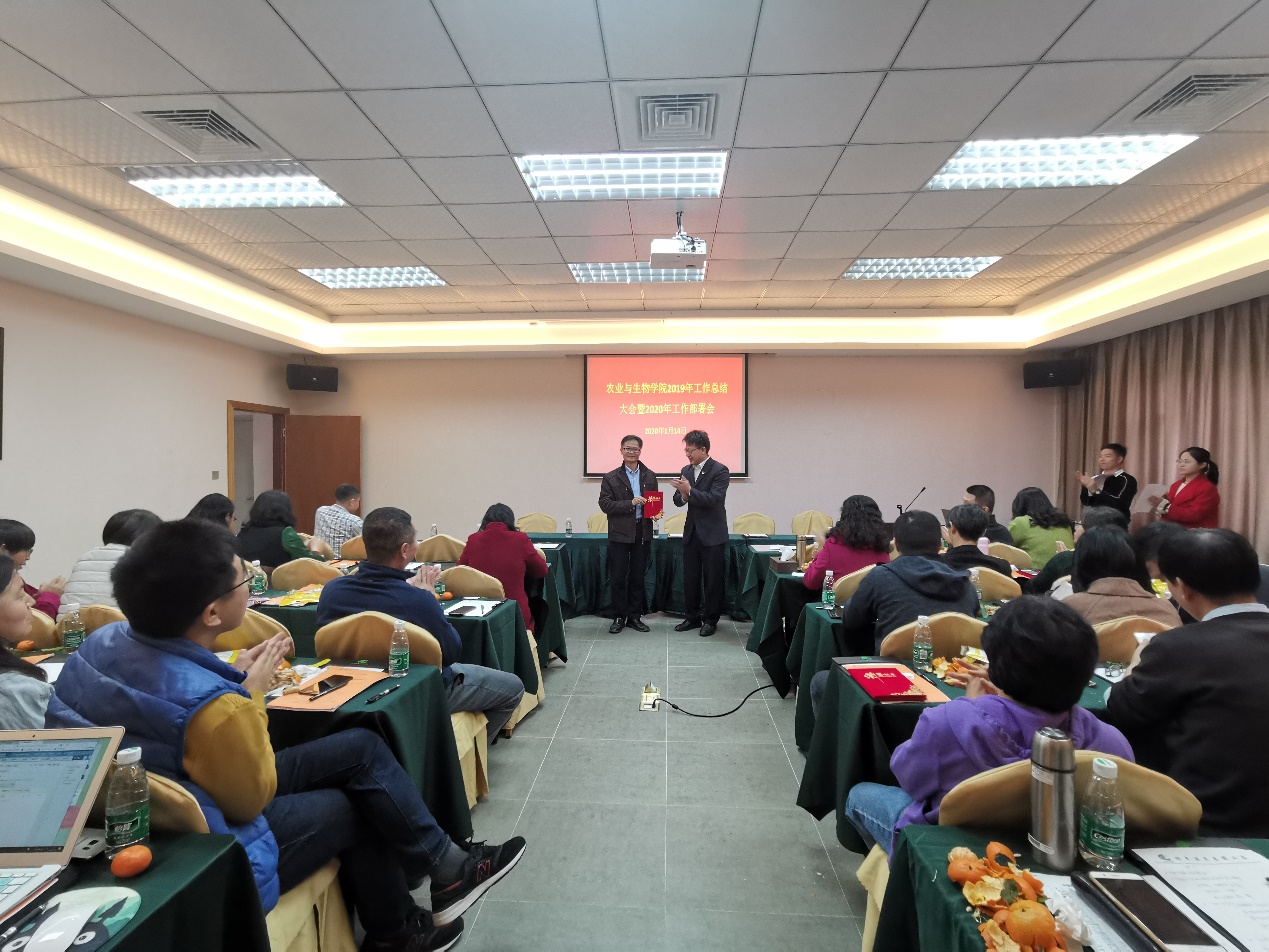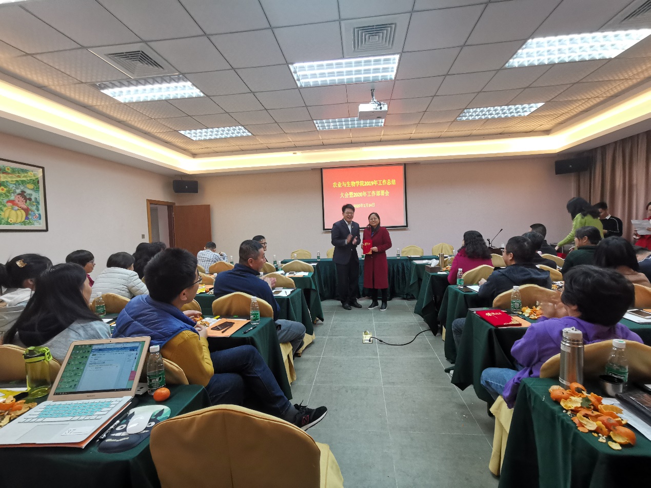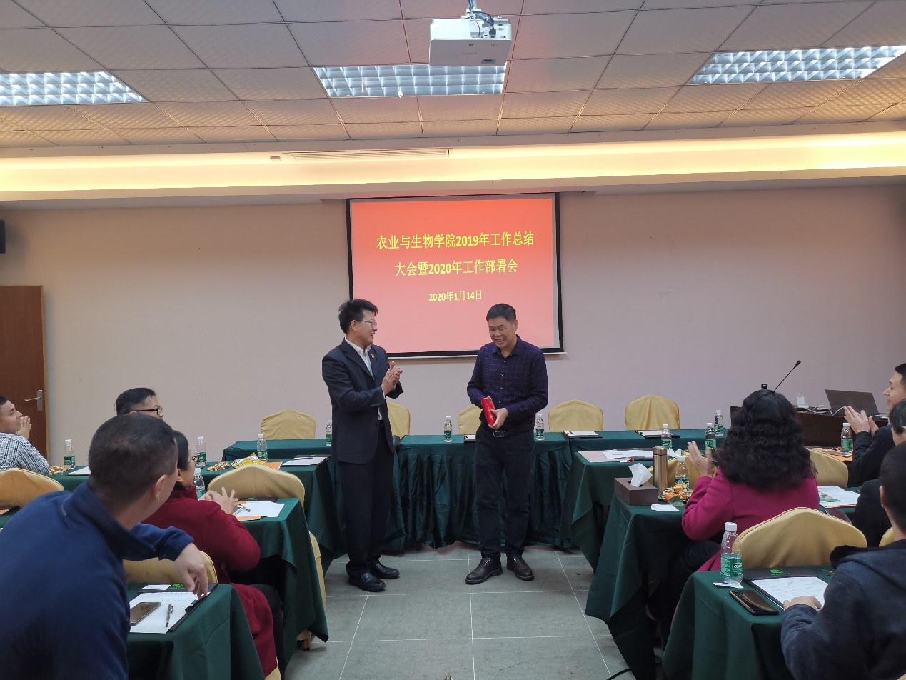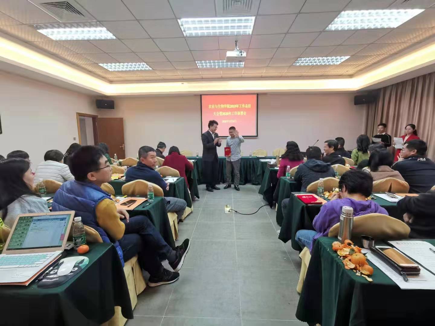 随后,陈丹雄作题为“2020 砥砺奋进”的工作总结。他首先从“政治党建”把方向、“思想党建”固红色、“组织党建”强战力、“文化党建”绘底色、“功能党建”添亮色、“效能党建”守本色等六方面回顾了学院2019年的党建工作,并总结出了六大工作亮点:第一,着力党建主业,提升组织战斗力;第二,着力总体安全,意识宣传勇争先;第三,着力立体思政,十大育人捷报传;第四,着力乡村振兴,扶助农工做先锋;第五,着力以党带团,群团工作上台阶;第六,着力党建引领,科学发展态势好。他强调,在2020年,学院需在压实党建工作责任、提高党建工作质量、提升党建工作水平等方面做出更大的努力。
