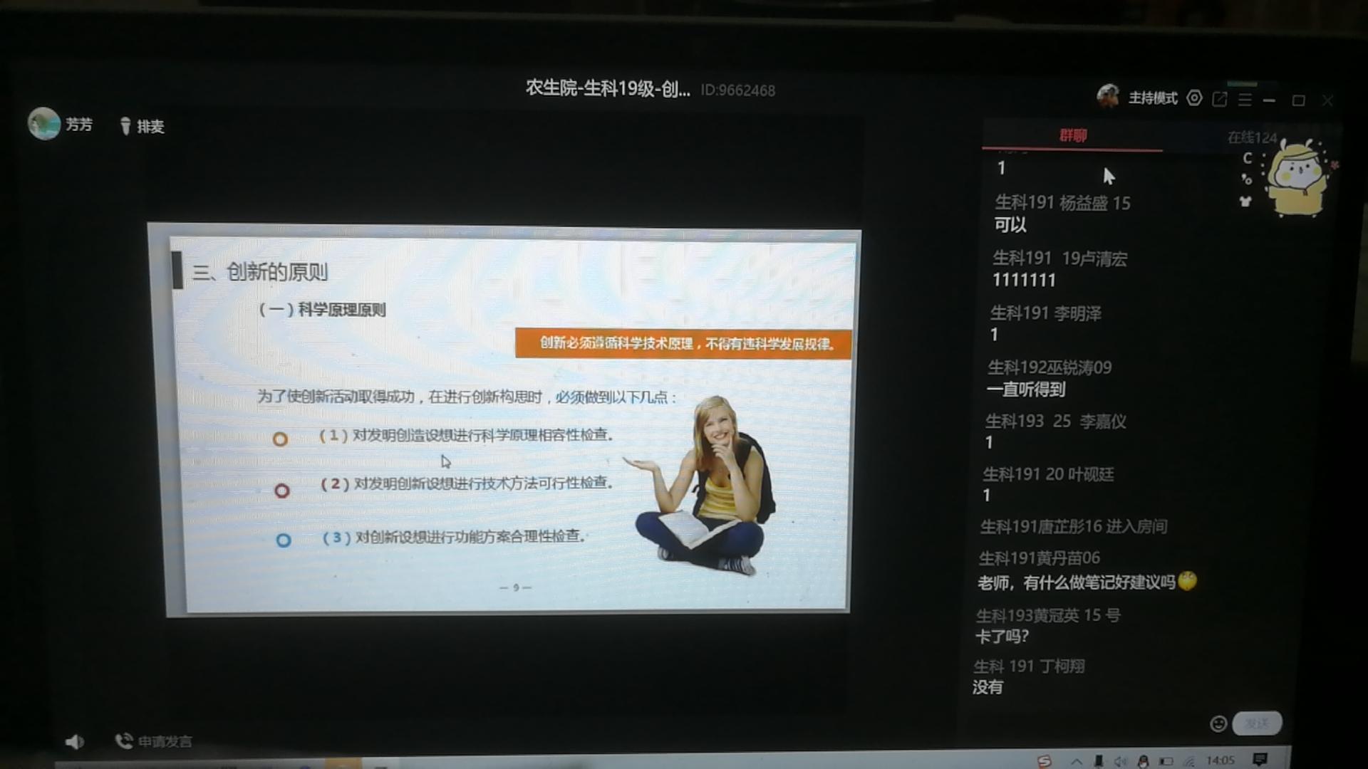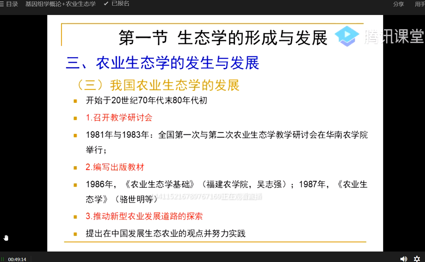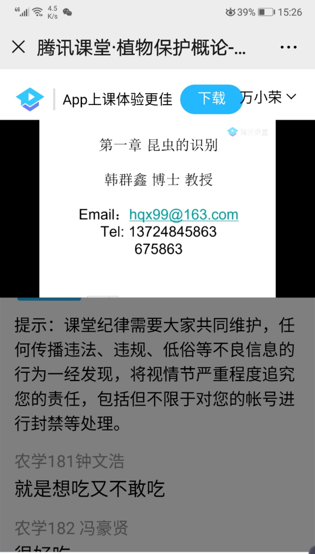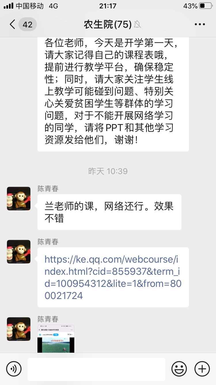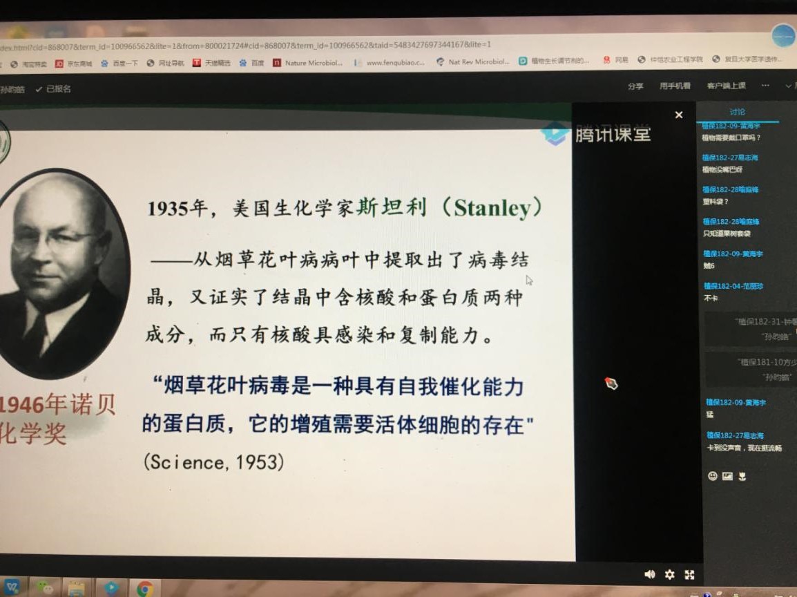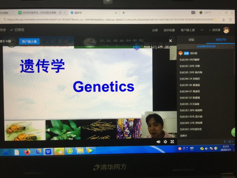 m88 app本学期共承担66门理论课教授,必修课33门,专业选修课25门,公选课8门。其中,开学第1天、第2天开课总共23门。使用的网络平台主要有超星学习通、腾讯课堂、雨课堂等。学院领导及本科应急教学工作小组主要听取了孙昀浩老师的《植物免疫学》、杨彬老师的《作物遗传学》、崔华威老师的《种子经营管理学》、李春梅老师的《农业生态学》和《基因组学概论》、孙晓芳老师的《创新创业教育基础》、周玲艳老师的《遗传学》、兰霞老师的《作物栽培学》、韩群鑫老师的《植物保护概论》等课程。周玲艳老师的《遗传学》和杨彬老师的《作物遗传学》以腾讯直播为主,结合超星学习通进行课前预习、课后练习、讨论、阅读等。崔华威老师的《种子经营管理学》以雨课堂进行教学,其他老师采用腾讯课堂进行直播。老师们状态饱满、声音洪亮,提前进入课堂,课程PPT制作良好,结合爱国主义、课堂思政教育,网络基本流畅、语音播放清晰,学生积极参与互动。其中,孙晓芳老师虽然身在疫区,还是备课非常充分。但还是存在个别课程个别同学迟上线,上课过程中掉线现象,以及在上课中互动回答问题存在回音或者无法正常上台回答问题的现象。