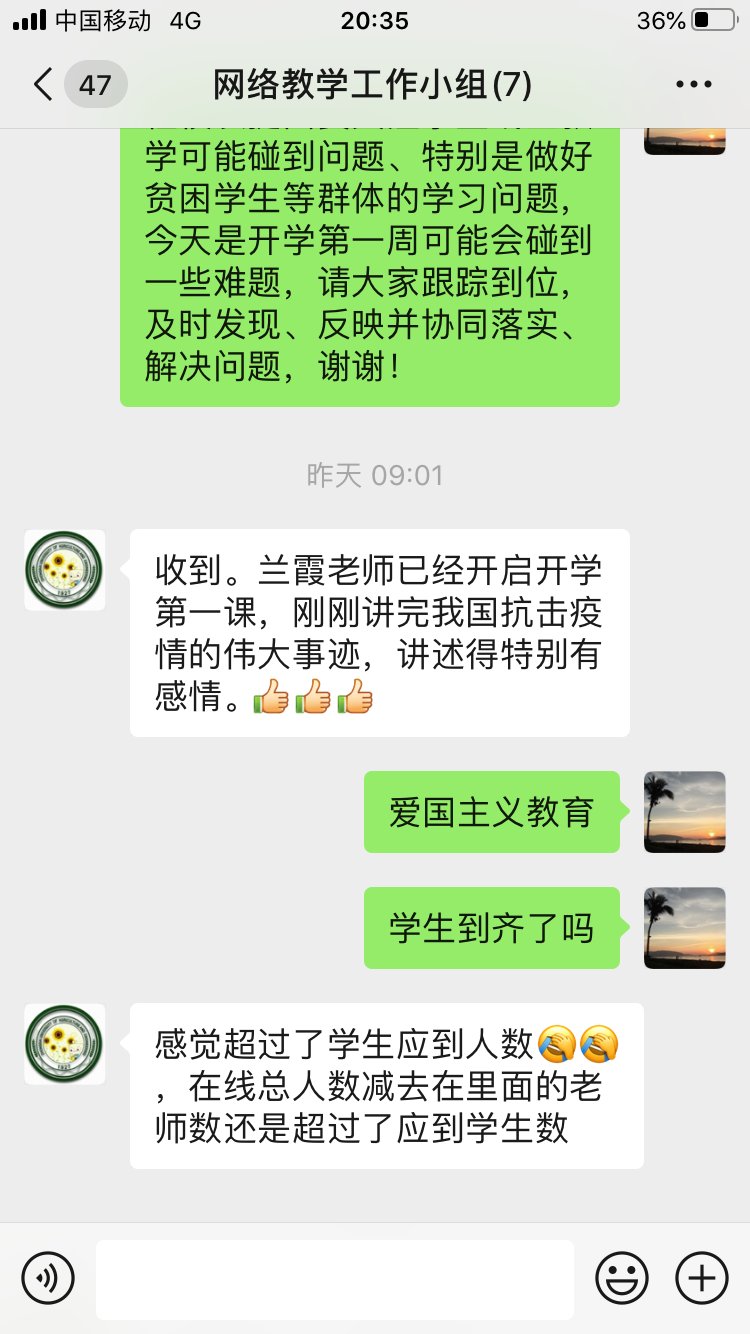 总的来说,学院课程网络教学工作开展顺利,教学秩序井然。老师们认真负责,学生积极参与,展现m88 app师生共同抗疫的精神风貌,展现m88 app教风、学风共促进的良好气象。