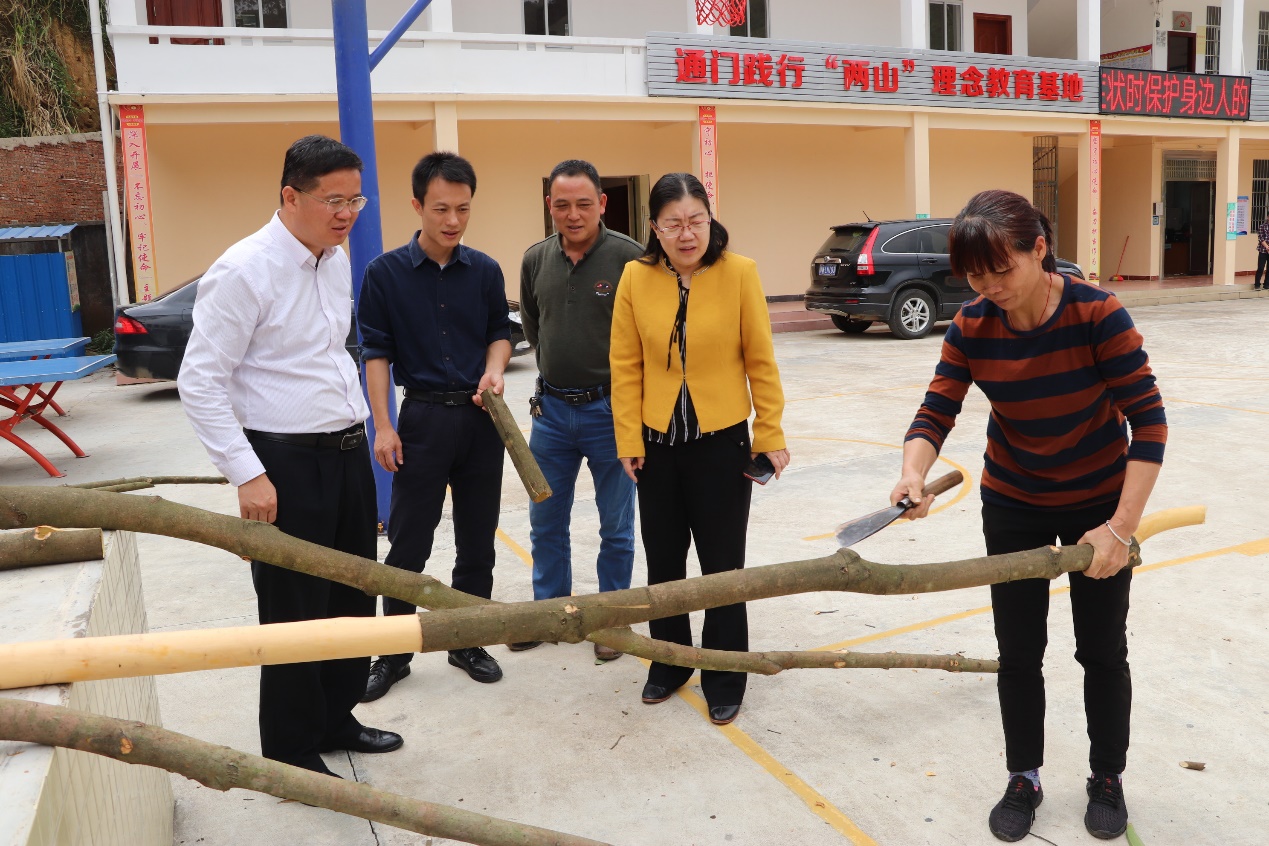 张伟丽(右二)在通门镇肉桂苗繁殖基地指导