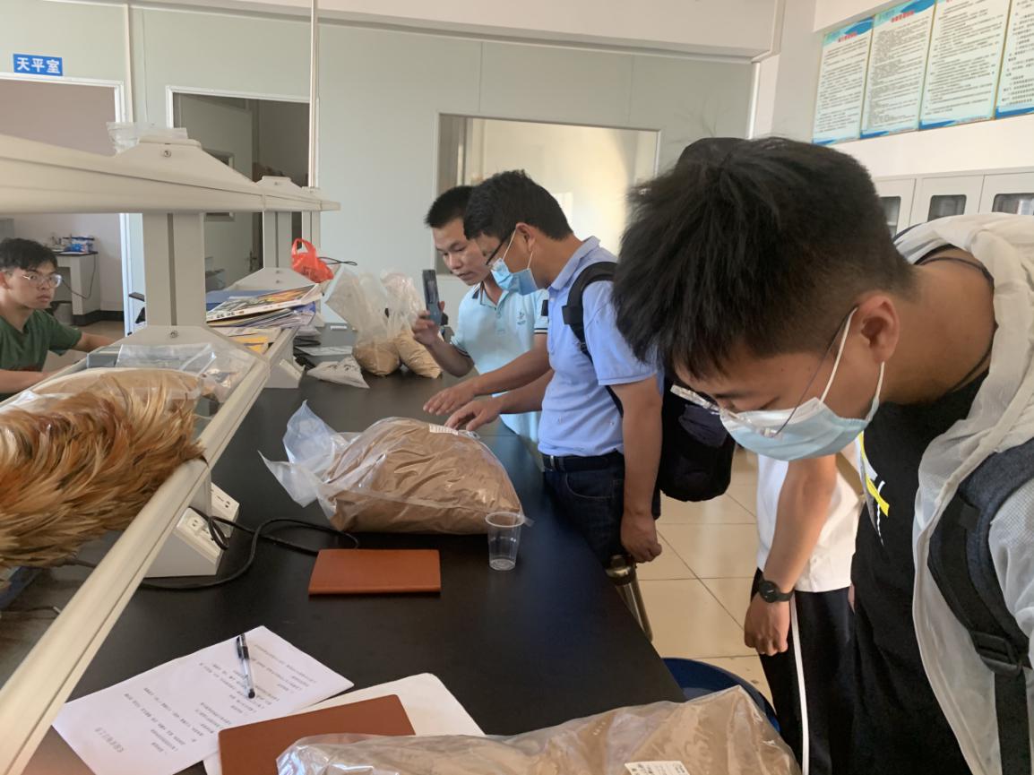 7月14日,团队到富民饲料有限公司考察。该公司创建于2009年,是一家集科研、开发、生产、销售为一体的,以生产和销售“数码牌”“数源牌”“宝船牌”畜禽及水产饲料为主的企业。团队首先考察了该企业的种养基地,了解当地的土壤气候因素,这为探讨饲料作物种植和种养模式打下了基础。随后参观了富民饲料的原料仓库、饲料生产车间与产品实验室等,通过饲料、动保产品展示和企业代表的针对性介绍,团队大致清楚企业当下的现状以及未来需求。