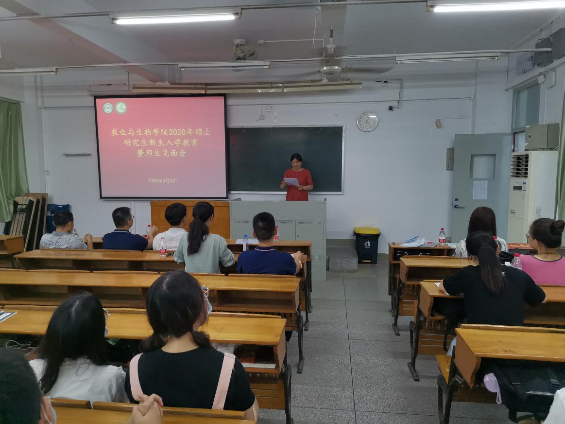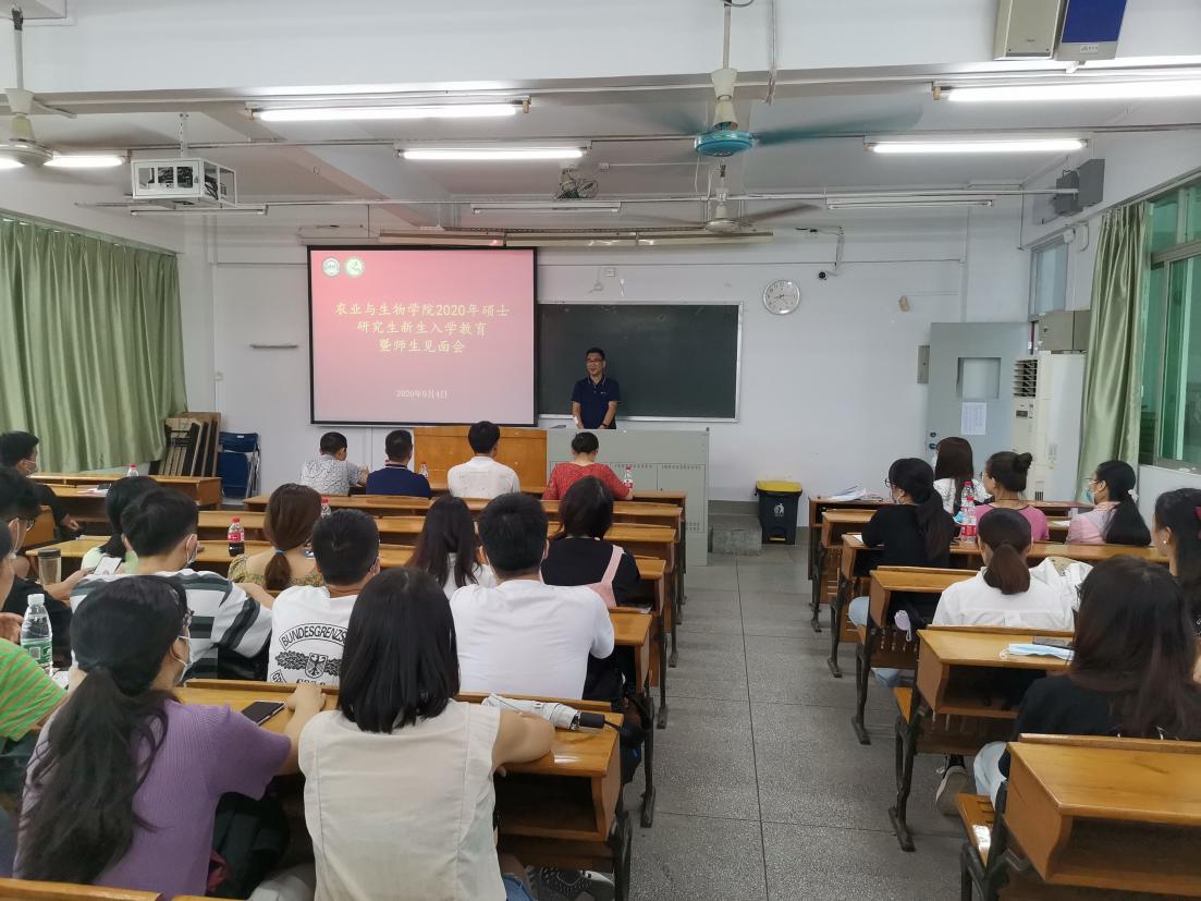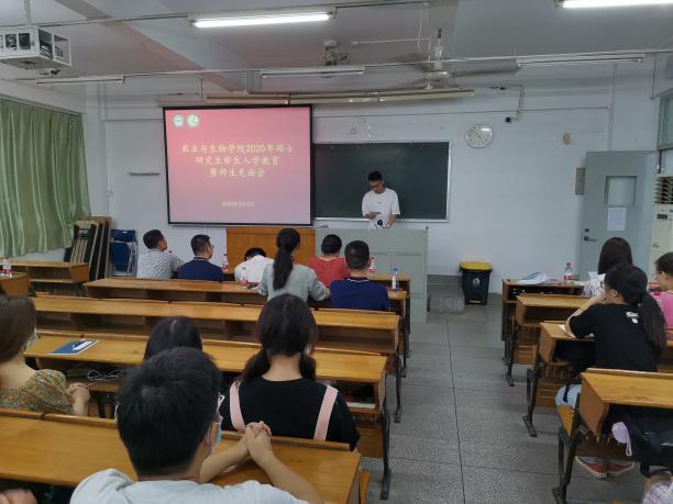9月4日下午,m88 app在海珠校区教学楼609举行2020级研究生新生入学教育暨师生见面会。学院领导、导师代表、班主任、广东嘉美好生态科技有限公司副总经理方佳煜和2020级全体研究生新生参加会议。会议由学院党总支副书记周超雄主持。