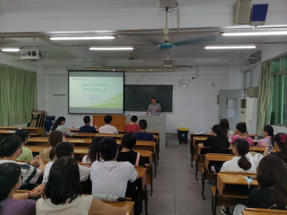 大会第一项议程是奏唱国歌,接着,学院副院长万小荣致欢迎辞。万小荣首先代表学院全体老师对新生的到来表示热烈的欢迎。紧接着,他从学科建设、科研平台和研究生教育等方面介绍了学校和学院的基本情况,使新生们对学校和学院有了更全面的了解,增强了学习的信心。最后,万小荣以德州农工大学的一句话——“Feed our world, grow our economy, protect our environment,Improve our health, enrich our youth !”勉励同学们在未来的研究生求学生涯中砥砺奋进。