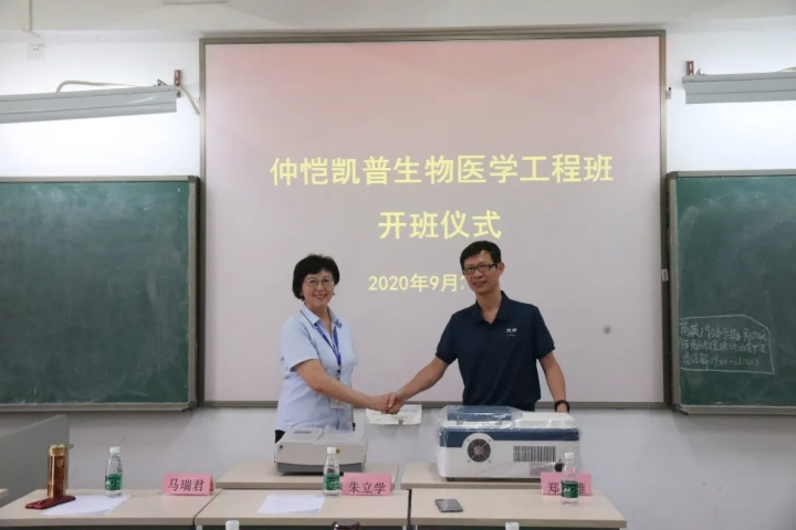会议上,广东凯普生物技术有限公司向m88 app捐赠了价值50万的教学仪器,朱立学副校长和马瑞君院长进行了仪器交接仪式。