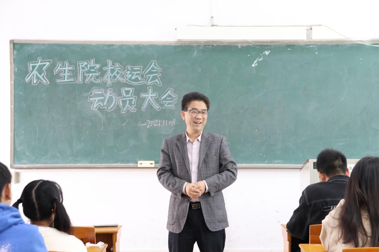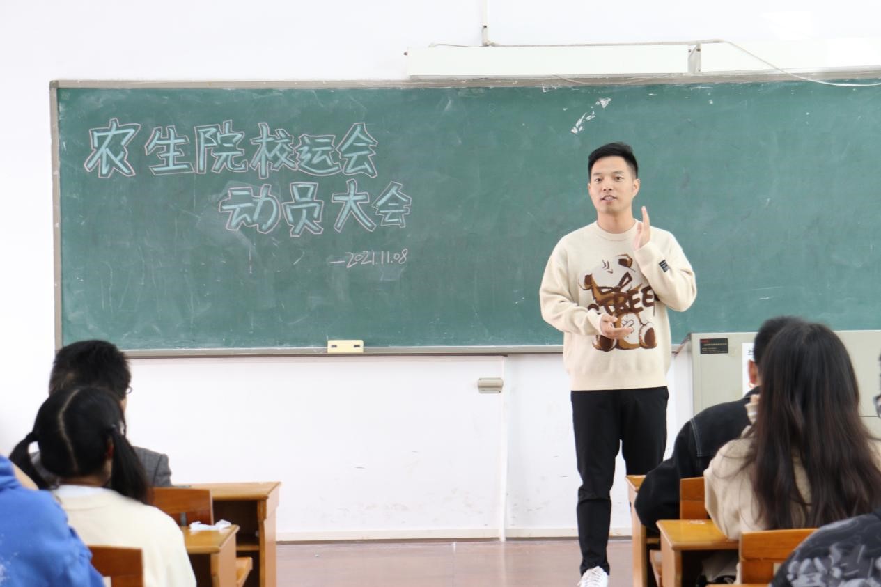会议开始,由辅导员苏登进行讲话,他向在场的同学们强调了身体健康的重要性,提议并鼓励同学们积极主动的参加体育比赛,体育活动以增强自身体魄。