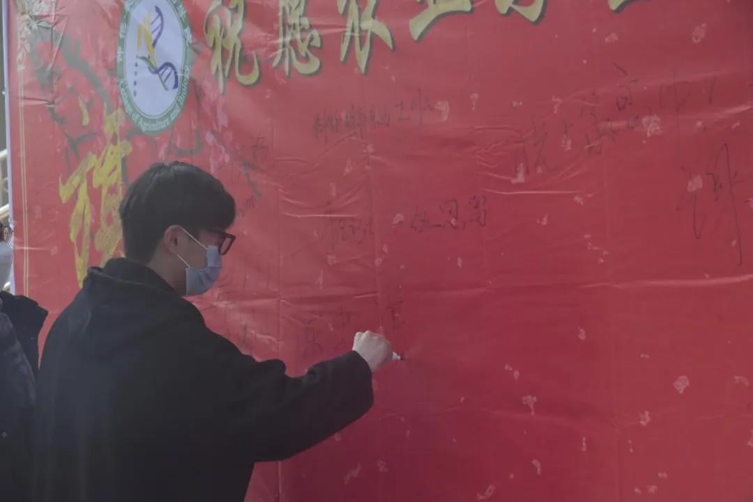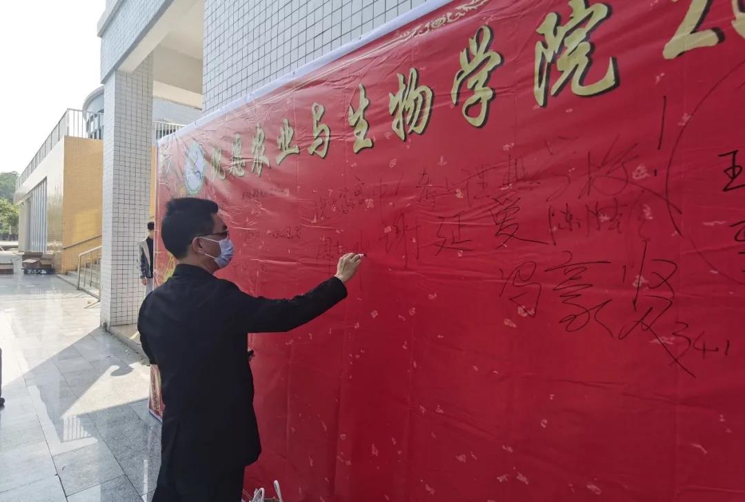 在出发前,陈丹雄带领考研同学们来到“金榜题名”签名榜上签名,给他们加油打气。同学们用坚定的笔触宣告着他们必胜的信心与决心,“研”途上,相约一“研”为定。