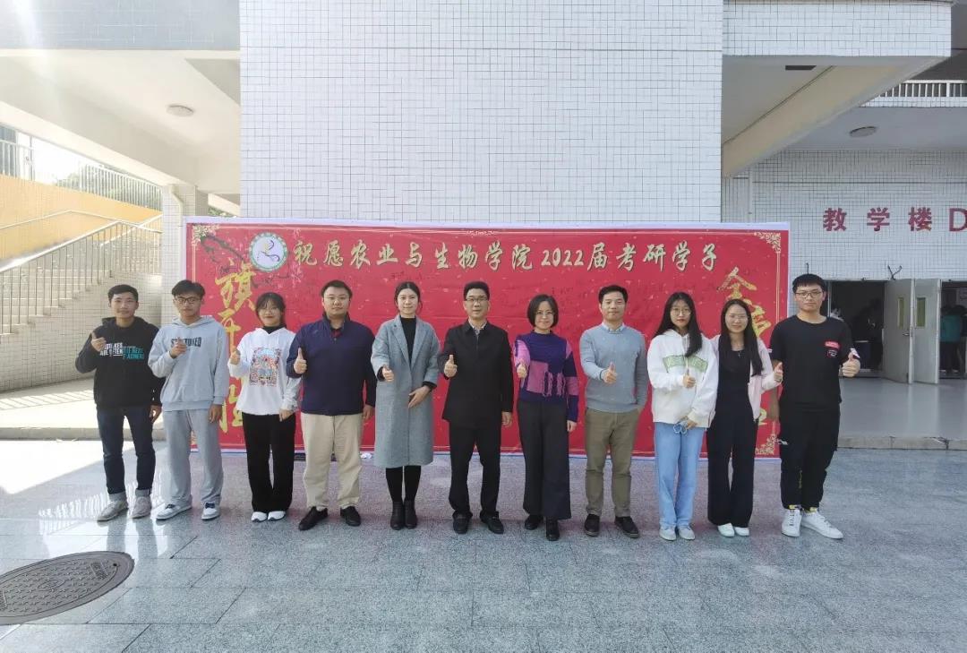 冬日寒冷,暖心送考。为助力农生考研学子圆梦,金榜题名,树立考试信心,12月24日中午,学院党委书记陈丹雄,党委副书记周超雄,辅导员苏登、孙晓芳、李城、肖芳芳在白云校区综合教学楼门口一起为考研同学温暖送行。