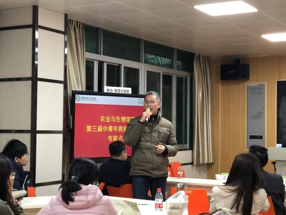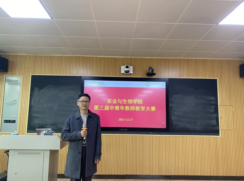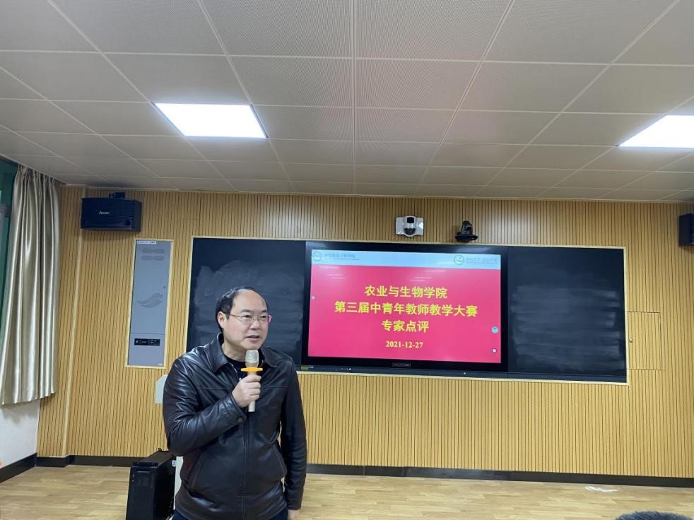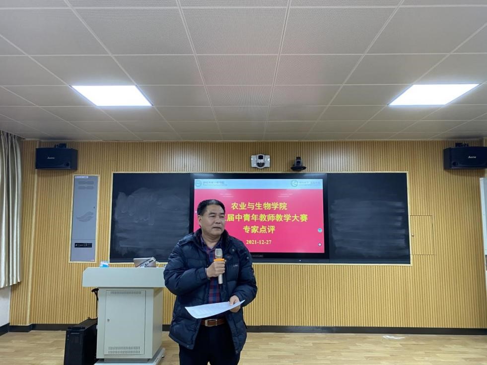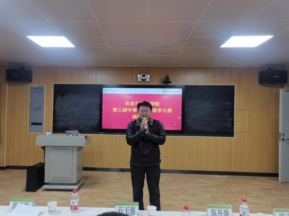 点评环节,专家们热情洋溢为比赛选手指点迷津。专家组长石玉强处长充分肯定本次比赛的精心组织及参赛者的精彩讲演,他指出:本次比赛参赛选手都做足准备凝练打磨、苦下功夫力展才华,但还需要从如何选择一个竞赛教学节段、课程思政元素的渗透与融合等方面进一步完善授课内容和打磨课程PPT,在比赛现场诠释与表达方面继续提升授课质量,力争在全校比赛中取得优异成绩。评委郑奕雄院长站在课程思政和建设新农科的高度出发,对每名参赛教师说课中的优缺点一一进行点评,提出完善课件和演讲的指导性意见。评委邓奋敢副主席充分肯定了本次比赛的组织、动员及参赛等环节的准备工作,同时也提出宝贵的意见建议,希望晋级参赛教师继续精细准备、赛出风采、赛出水平。