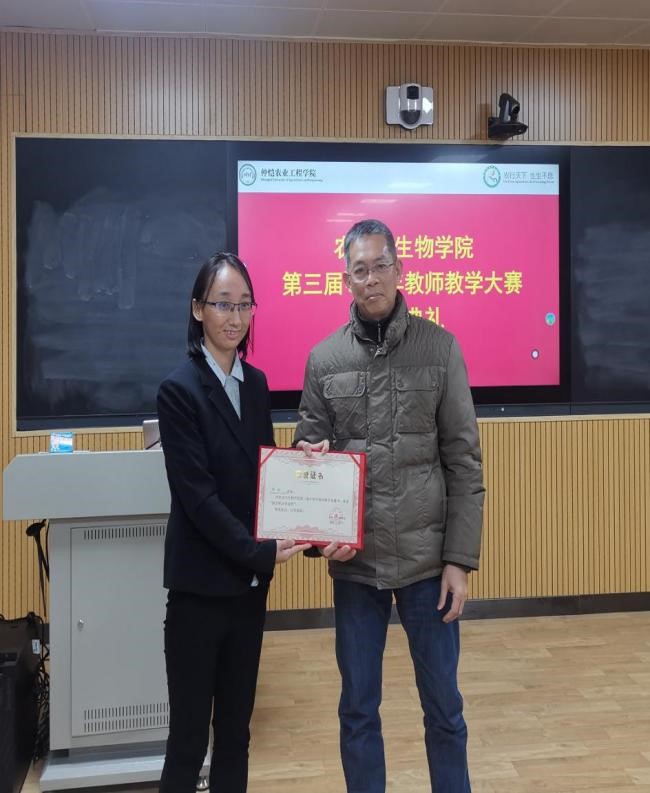 一番精彩说课和激烈竞逐过后,经过评委们充分讨论、独立打分和观众现场打分,评选出各个奖项获奖者。植物保护系孙昀皓博士、中药学系张丽博士、生物技术系王丽敏博士等3名教师荣获大赛一等奖,生物科学系李克克博士、生物技术系秦迪博士、种子科学系崔华威博士和支庆庆博士、农学系李春梅博士等5名教师获得大赛二等奖,张丽博士还荣获大赛最受听众欢迎奖;生物技术系、中药学系等2个单位荣获优秀组织奖。