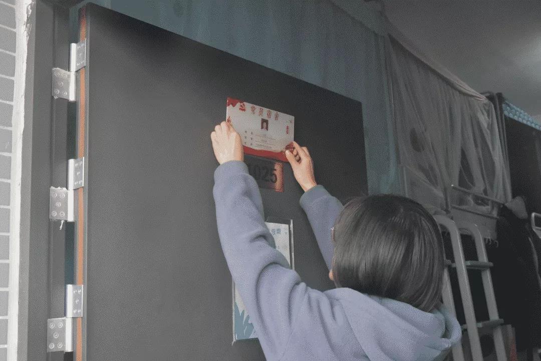 为发挥学生党员在日常学习生活中的模范带头作用,激励更多学生向优秀的学生党员看齐,12月29日下午,m88 app党委副书记周超雄与辅导员孙晓芳到学生宿舍,共同为学生党员宿舍张贴标识牌。
