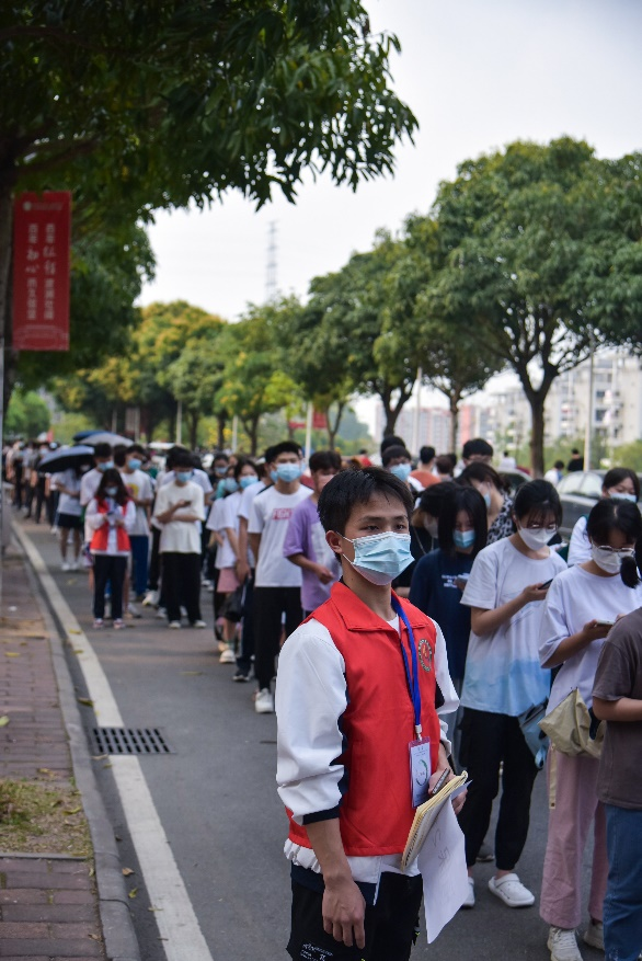 3月15日下午,m88 app党委副书记周超雄,辅导员苏登、孙晓芳、李城及邝健睿来到检测现场,动员同学们要积极主动、齐心协力的完成此次核酸检测工作。党员志愿者以及团委学生会的工作人员们也准时到达集合地点进行组织工作。
