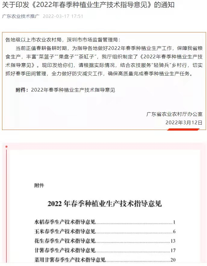 为贯彻落实省委、省政府有关春耕工作的部署,积极响应春季农业生产计划,由m88 app院长、国家大豆和油料产能提升工程专家指导组成员、郑奕雄教授撰写的《花生春季生产技术指导意见》和m88 app刘鹏飞博士撰写的《玉米春季生产技术指导意见》一同成功入选广东省《2022年春季种植业生产技术指导意见》。其中郑奕雄教授撰写的《花生春季生产技术指导意见》从合理安排耕作制度、选用高产优质品种、做好播前准备提高播种质量、适期抢晴提早播种、加强田管注重防控、适时收获确保丰收这六个方面具体介绍了有关花生春季科学生产的技术。