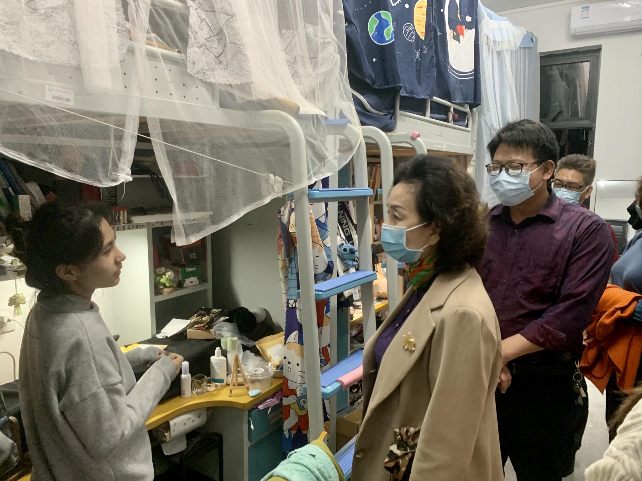 程萍校长走进学生宿舍看望了m88 app20级的同学们,与大家亲切交谈,询问和关心同学们的日常生活、学习和居住情况,耐心倾听同学们的心声,解答同学们反映的大学困惑,勉励同学们肩负时代责任,高扬理想风帆,做有理想、有追求、有品质、有修养的大学生。