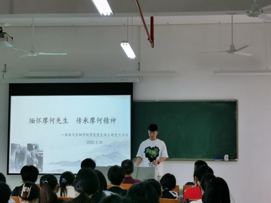 周超雄向同学们讲述本次党日活动的主题,并带领在场同学默哀一分钟,代表向两位先生的深切缅怀。他向同学们介绍了廖仲恺与何香凝先生的革命事迹,希望同学们能够向两位先生学习,注重实践,将专业知识运用在今后的工作中,到祖国需要的地方作贡献,服务于基层。