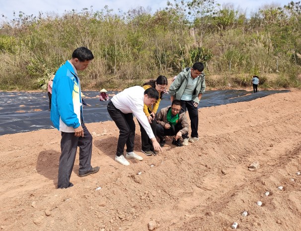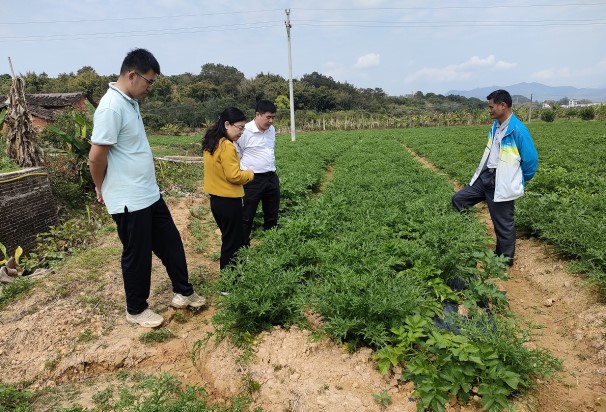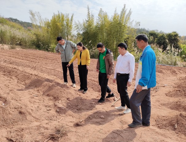 随后科技特派员团队和镇农办朱主任到德庆县菜之蓝农业科技有限公司的四个马圩镇种植基地进行技术指导。该公司是典型的多种作物、多种种植模式及多种销售渠道的产销一条龙的企业,种植地基地正进行春耕种植。