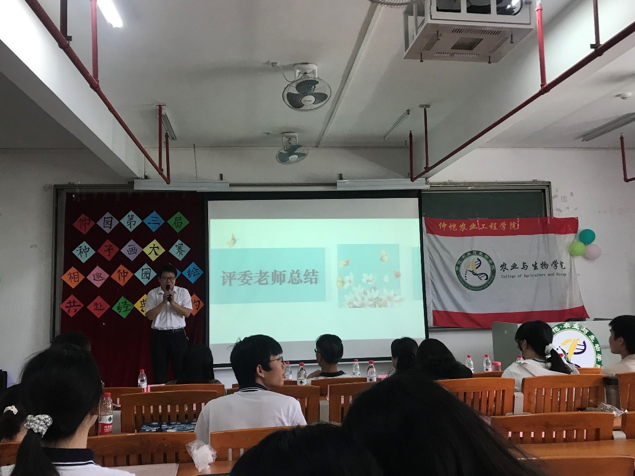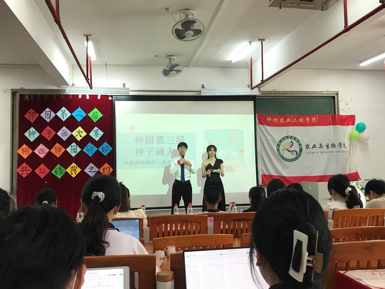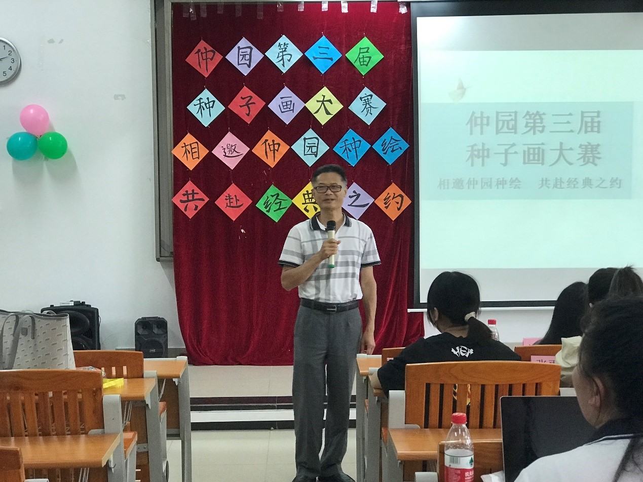 郑奕雄为大赛致辞。他指出制作种子画需要注重细节,像艺术家一样雕琢入微,使作品栩栩如生。同时他感谢学院、企业等各个单位的关心、关注与支持。种子画大赛是个综合性活动,将德、智、体、美、劳五育融合在一起,给予同学们施展创新能力与动手制作能力的机会。之后更解答了同学们关于制作种子画的相关问题。