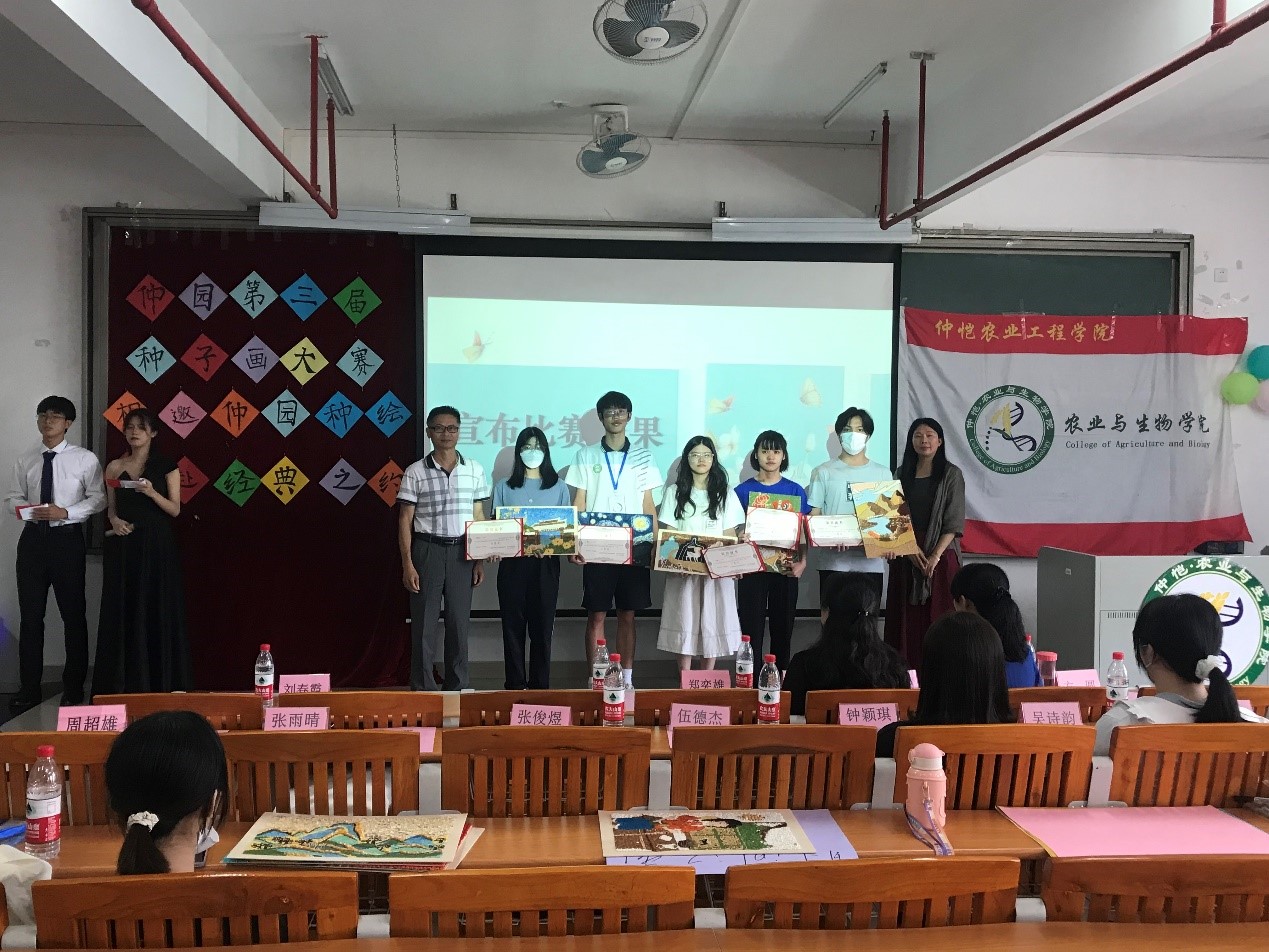 为弘扬“注重实践,扶助农工”的仲园精神,融合红色文化,培养同学们的创新意识,帮助学生了解专业文化,提高学生的创新能力,5月20日上午,m88 app在白云校区D栋综合楼707室举办了仲园第三届种子画大赛决赛。出席本次比赛的嘉宾及评委们有m88 app党委书记陈丹雄,党委副书记、院长郑奕雄,党委副书记周超雄,党委委员、副院长周玲艳、副教授刘季平,何香凝艺术设计学院副教授刘春霞以及m88 app学生会主席团、各学院代表。