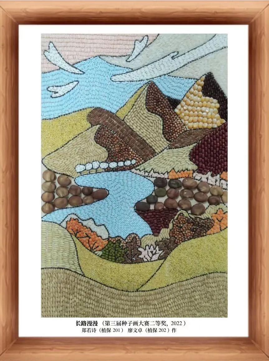 植物种子大小不一,种皮颜色各异,此次活动发挥学校优势,通过种子作画活动,弘扬时代精神,强化专业思想,引导同学们从制作经典作品中汲取经典文化的智慧和力量,激发同学们爱党、爱国、爱校情怀。