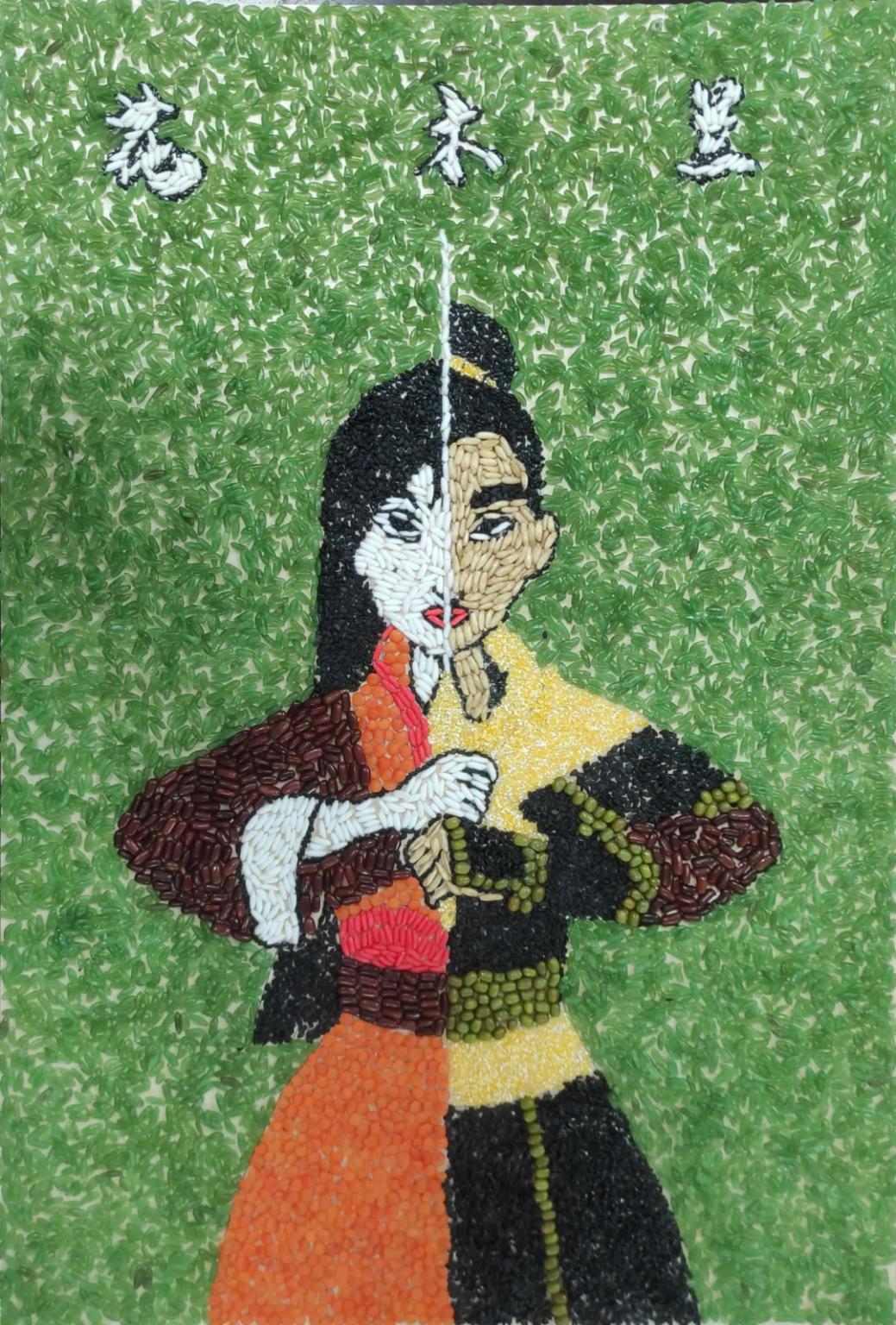 作品致敬经典《霸王别姬》,假霸王,真虞姬,程蝶衣终醒悟自己一直活在角色中。程蝶衣所饰虞姬正如蝴蝶一般美丽,这部经典也因此成为掀起人们心中风暴的蝴蝶。京剧是中国传统艺术宝库的一颗明珠,选择京剧中最为经典的人物来创作种子画,为了向在校全体师生宣传国粹京剧经典的奇特的魅力。