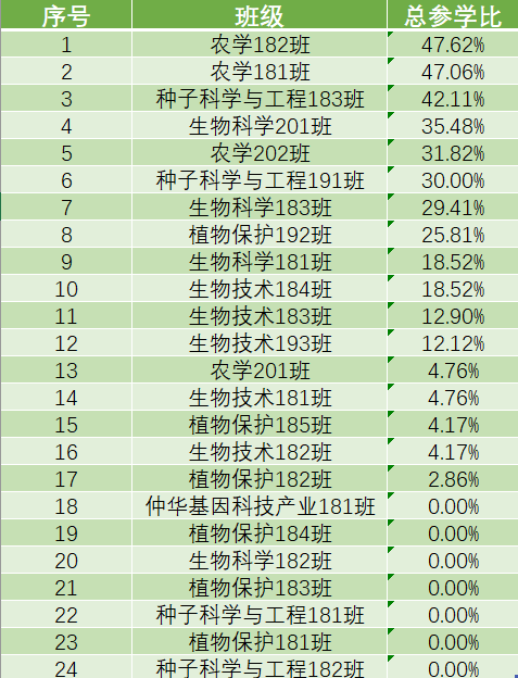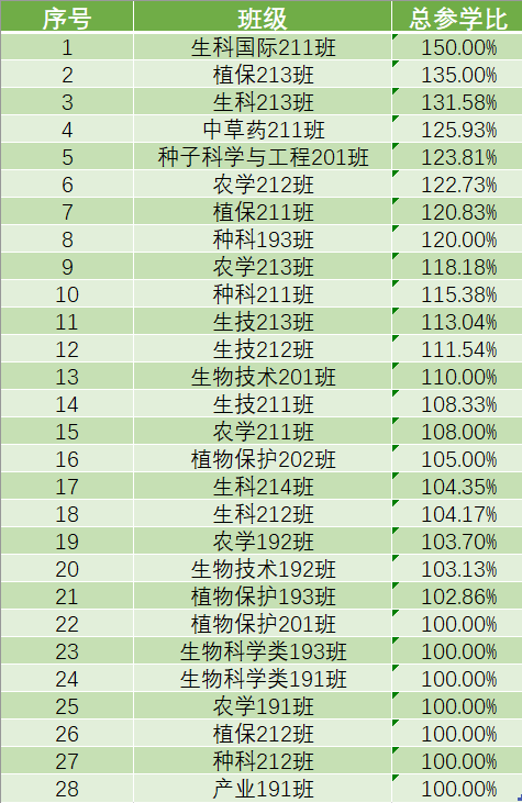 以下班级参与率已有较大的提升