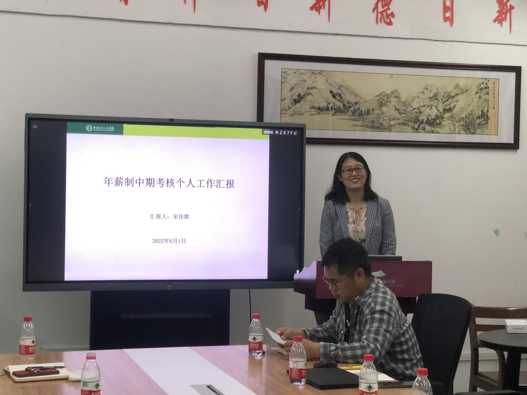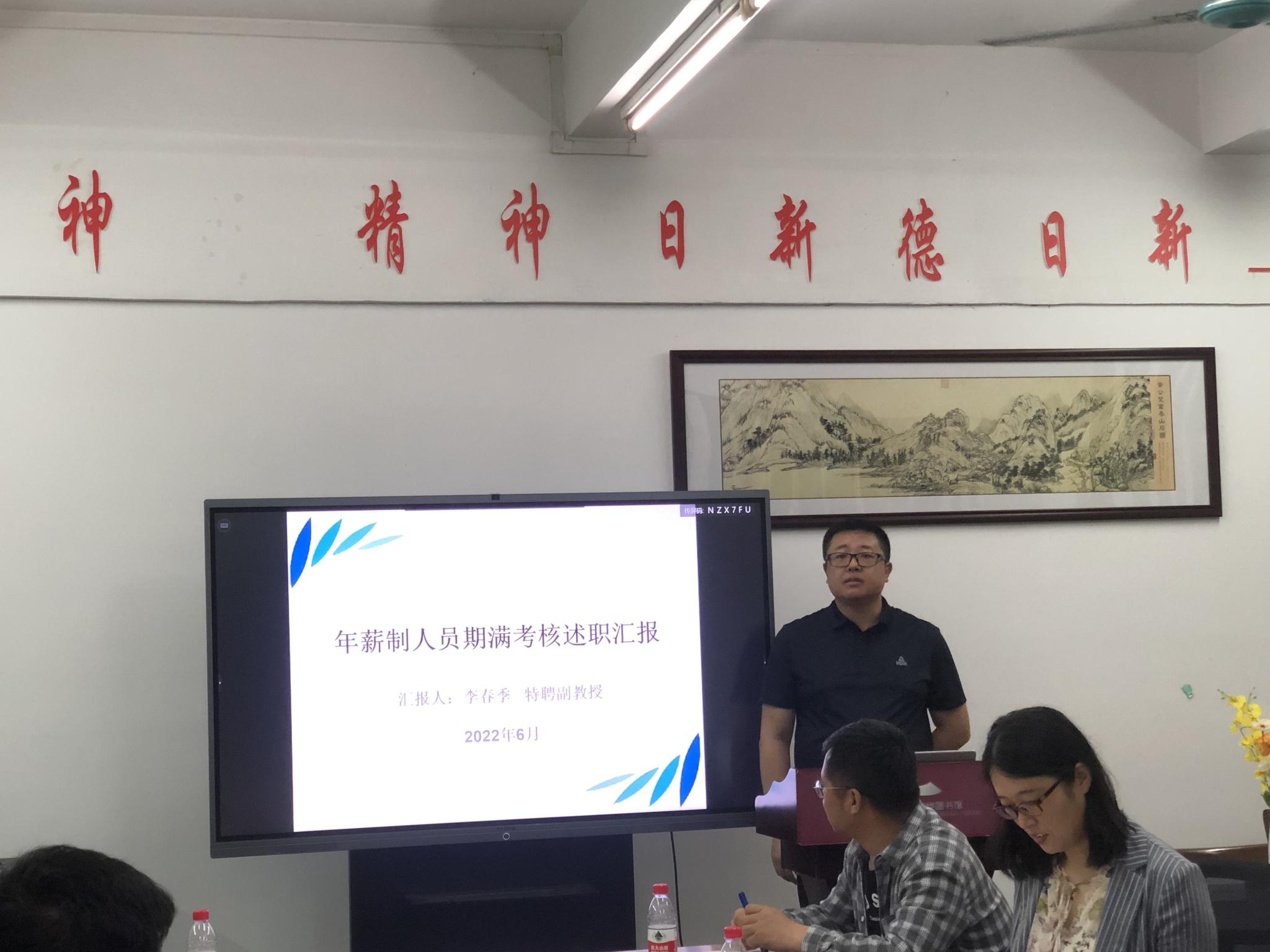 7名考核对象分别采用PPT做时长8分钟的任期述职报告,对照聘期合同任务,汇报了个人在师德师风、教学业绩、科研业绩、人才培养与社会服务等方面任务完成情况。考核专家认真听取汇报,并严格按照学校相关考核文件,对考核对象逐一进行材料审阅、疑问质询和综合点评。经过认真研讨,考评组成员形成学院考核意见,考评结果为:聘期期满考核者均为聘期考核达标;期中考核者有1名考核优秀,1名考核合格,1名受到工作预警。