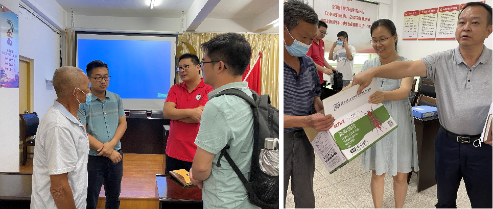 为促进潮州市潮安区龙湖镇农业产业发展,充分了解当地农民需求,解决农民遇到的生产难题, 2022年6月8日至9日,m88 app“助镇帮镇扶村”龙湖镇农村科技特派员谭晓丹博士携汕头市仙城镇特派员陈青春副教授、杨永博士和饶平新圩镇特派员彭进明博士以及硕士研究生杨冬、纪明亮等一行6人前往潮州市潮安区龙湖镇开展农业产业调研和技术培训,中山火炬开发区组团驻龙湖镇帮扶工作队童坚队长和龙湖镇吴晓嘉副镇长热情接待了特派员一行人。