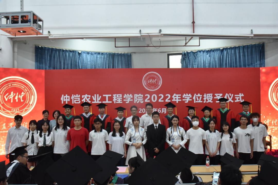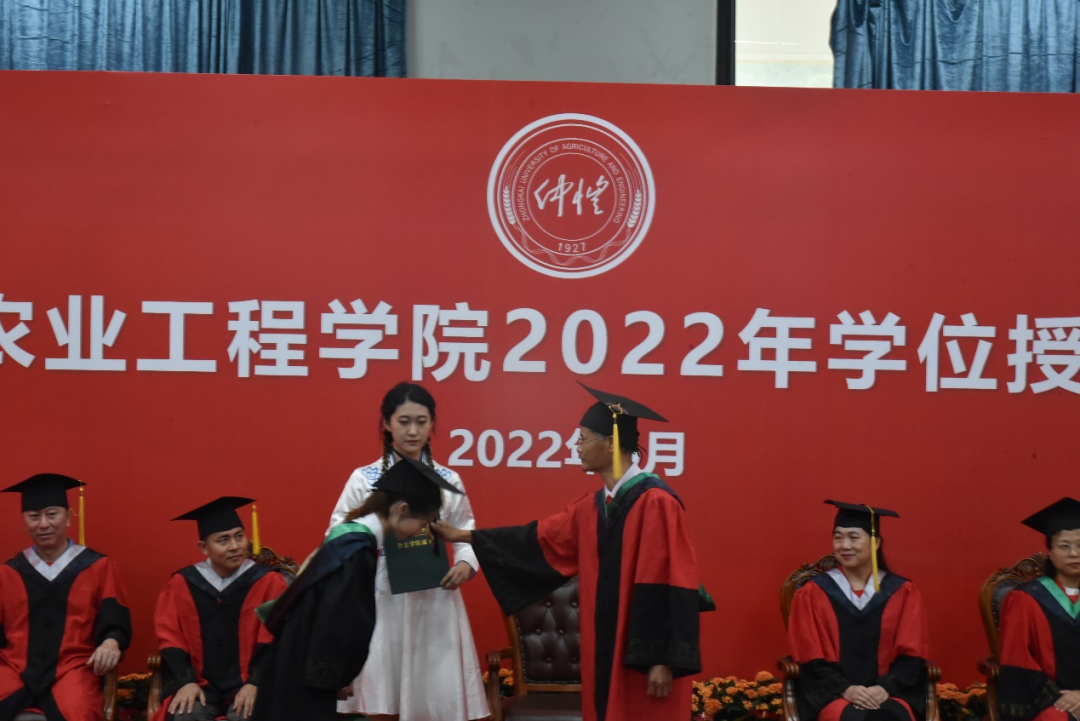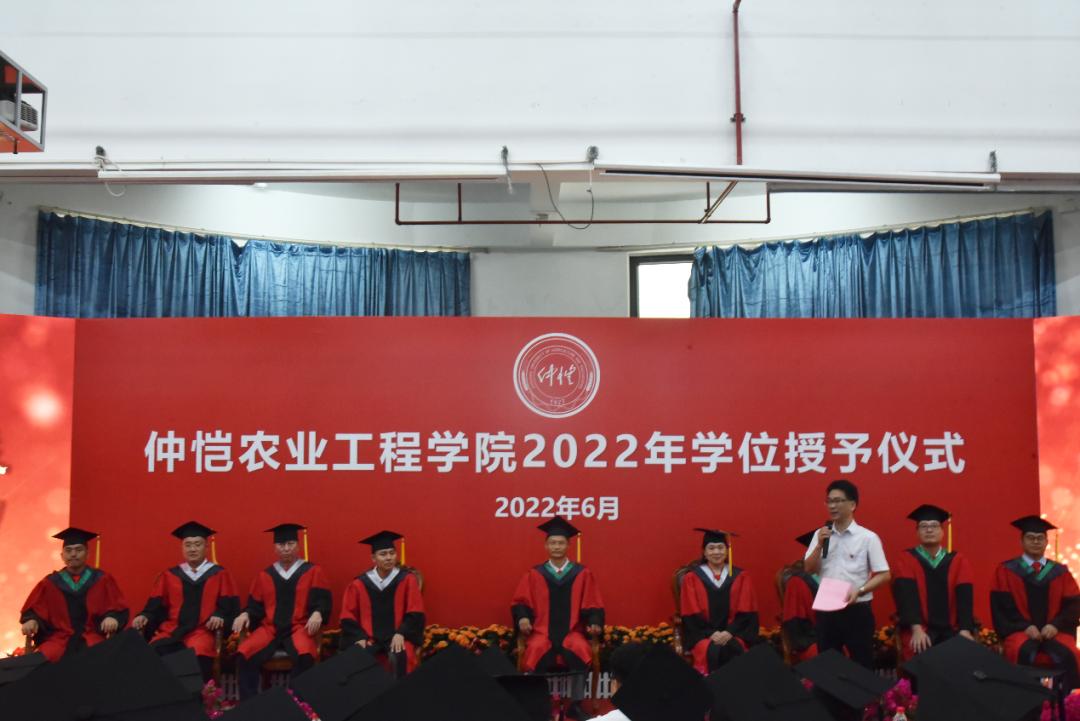 拨穗正冠是大学生毕业授学位时的一种礼节,象征毕业生已学有所成,可以展翅高飞。郑奕雄为农生院18级毕业生逐一拨穗、授予学位并合影留念,场面温情满满。接着,周超雄对学院全体毕业生顺利毕业、取得学士学位表示热烈祝贺,并希望他们不忘母校,谨遵老师教诲,用底气、锐气、骨气、正气四气坚持中国特色社会主义道路自信、理论自信、制度自信与文化自信四个自信;锐意进取,再创辉煌。随后,他一一介绍到场的导师们,并对他们的到来表示热烈欢迎。