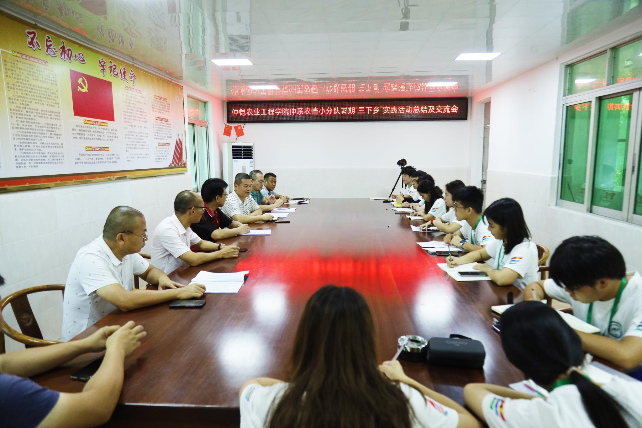 7月11日上午,仲系农情小分队赴雷州市松竹镇暑期“三下乡”实践活动工作总结及交流座谈会在松竹镇政府大楼会议室召开,松竹镇党委书记杜臣飞、镇党委副书记肖铸、党委委员林远、北边村驻村书记陈勇交等当地政府部门相关负责人,m88 app驻松竹镇帮镇扶村工作队队长陈颖,m88 app党委书记陈丹雄、创新创业学院院长黄江华出席会议,m88 app仲系农情小分队全体成员及带队老师邝健睿参加会议。会议由陈颖主持。