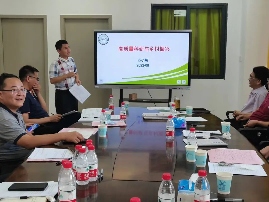 党委委员万小荣就《高质量科研与乡村振兴》作了报告。他详细介绍了学院的科研团队、鼓励大家充分利用现有的科研平台及优势,积极申报科研项目,在现有的科研成果上更上一层楼。接着,万小荣向大家介绍了现代农业产业技术体系、现代农业产业园,倡导大家充分利用省现代农业产业园、省现代农业产业技术体系,紧密结合“一村一品、一镇一业”,精准服务乡村振兴。