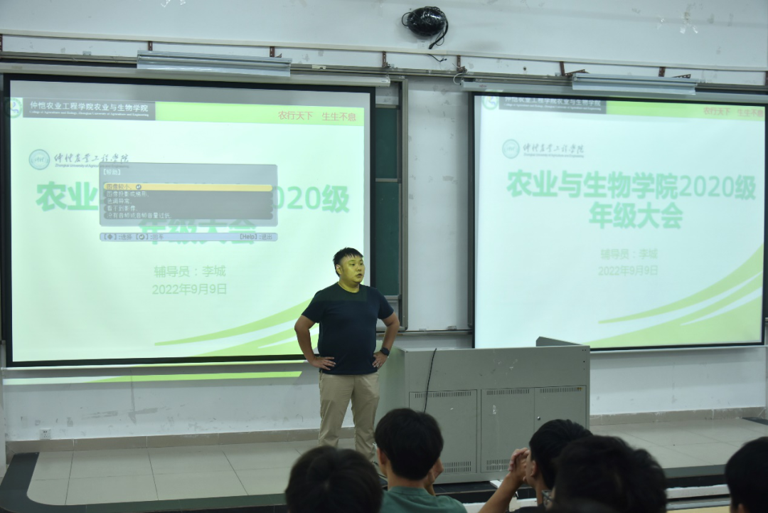 会议伊始,李城先对专升本的新同学表示祝贺,欢迎他们加入2020级的农生大家庭。随后,他更祝贺2020级的同学们双节快乐,希望同学们可以有一个愉快的中秋假期,同时他提出,在中秋假期,同学们需要自觉遵守学校疫情防控各项规定,减少非必要的外出活动,避免前往人群密集和封闭场所,不得前往中高风险地区。及时关注个人健康码、行程码变化,如实申报个人行程信息,主动配合做好疫情排查、核酸检测、流调溯源等防控工作。